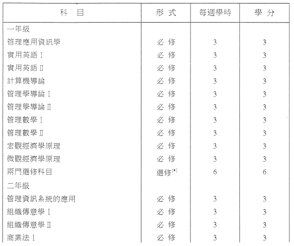 (*)進修科目由學生自工商管理學院院長指定的一套選修科目中選擇。