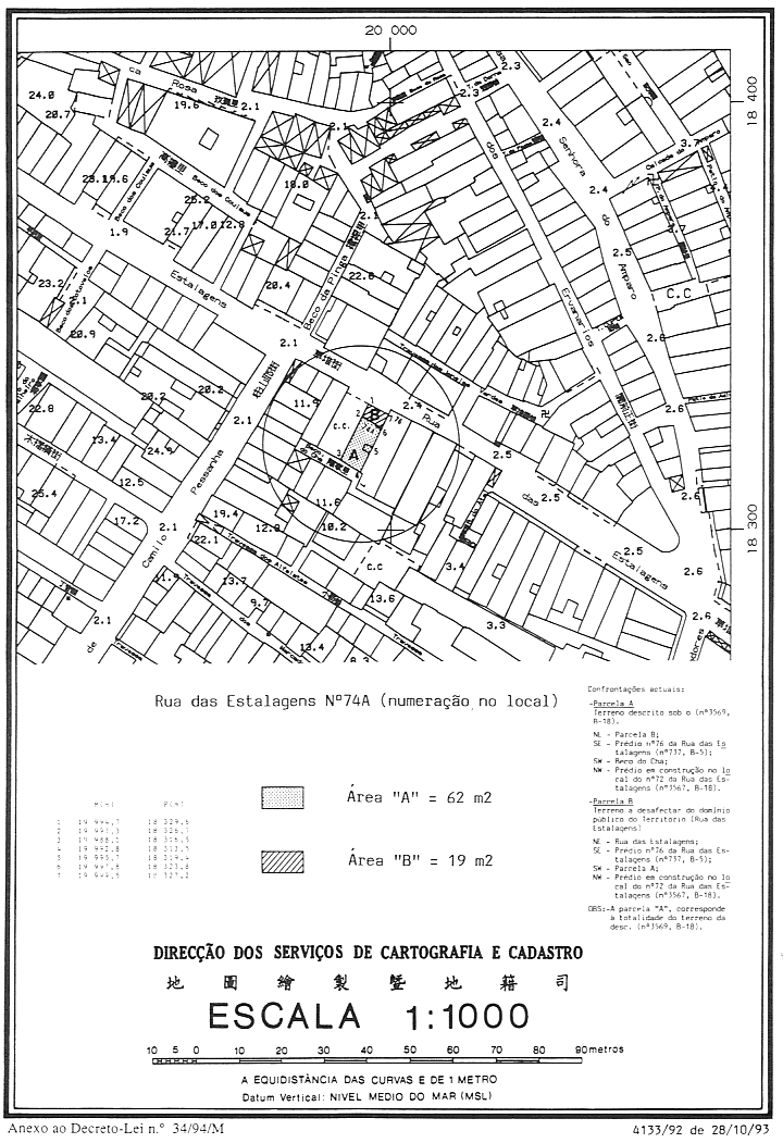 鑑於已為草堆街定出都市規劃,故在適當利用草堆街七十四——A號地段時,必須將拆毀有關樓宇所騰出之土地與另一幅在地圖繪製暨地籍司於一九九三年十月二十八日發出之第4133/92號地籍圖內,以字母“ B”標明而面積為十九平方米之相鄰地段 合併,以配合此街樓宇之正面排列。