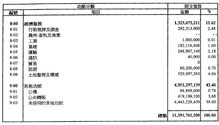 一九九五年經濟年度之預算開支總額定為澳門幣9,193,205,900.00。