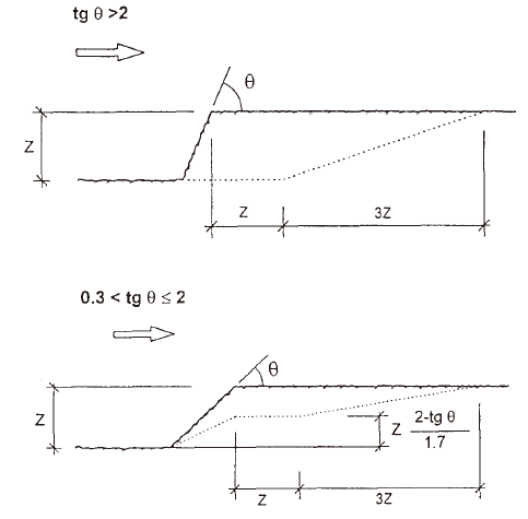 | 斜面傾斜度β(度) | 斜面上之外風壓係數δpe | 斜邊上之外風壓係數δpe | |||||||||