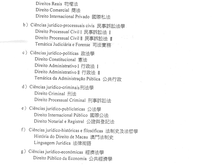 第二條——澳門法律導論課程為期不少於三個季度,包括配合特定條件和要求的基本法律科目的學習。須經過先修階段,成績合格者方可進入基本法律科目之學習。各科成績合格者獲頒發證書。