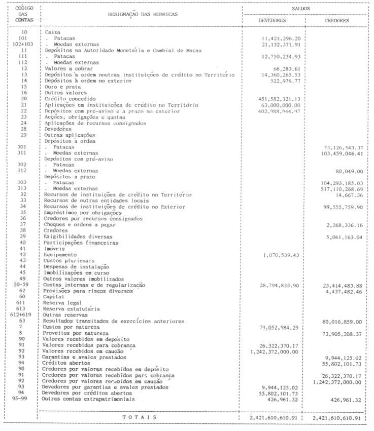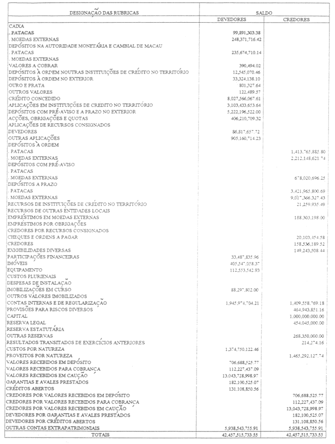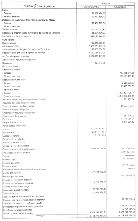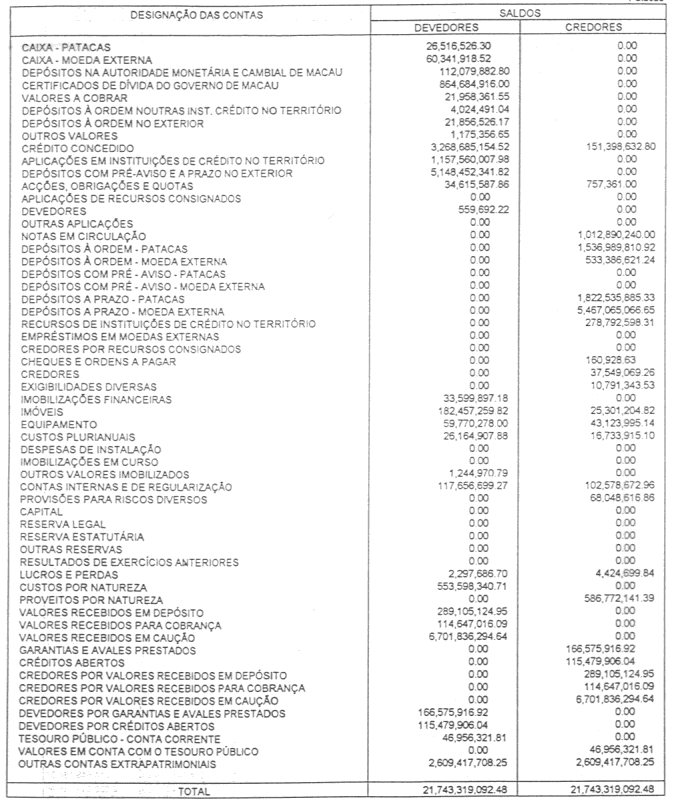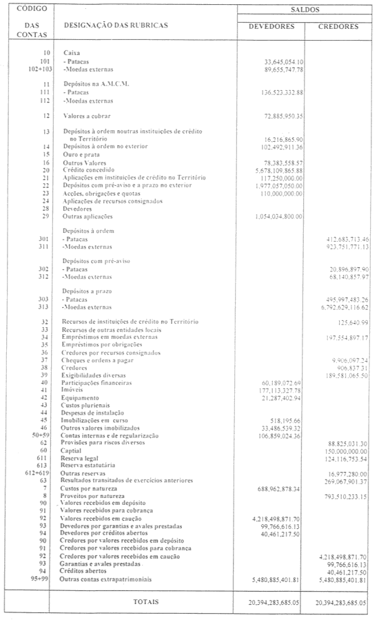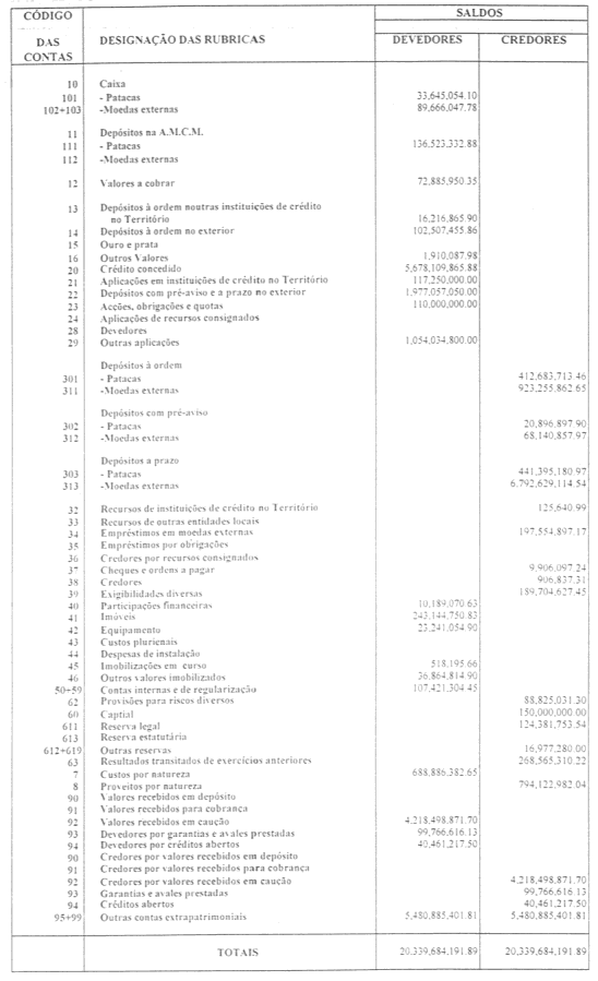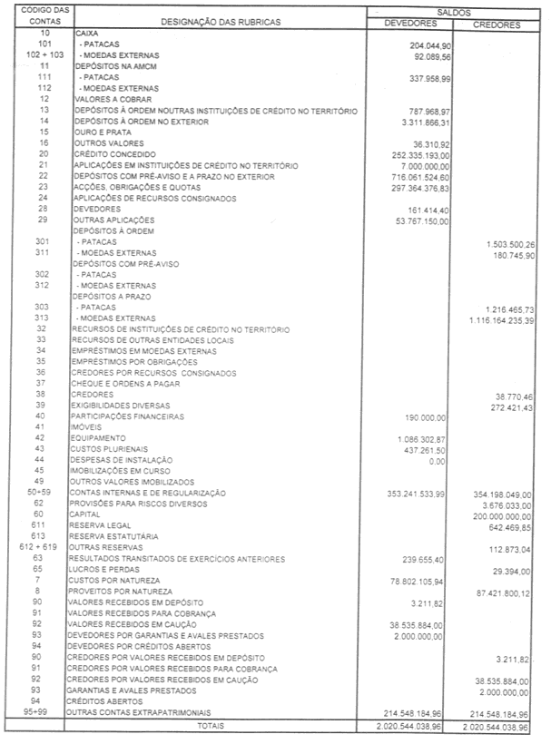 Balancete do razão em 31 de Dezembro de 1999 (Consolidado)