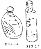 ou numa variante de forma de realização (Fig.2.1), a garrafa possuir além da face plana anteriormente descrita (Fig.1.1), mas possuindo a face curva uma forma cilíndrica cortada pela face plana oposta segundo um plano inclinado de modo a que a base superior do cilindro é um semicírculo e a base inferior é quase um círculo completo.