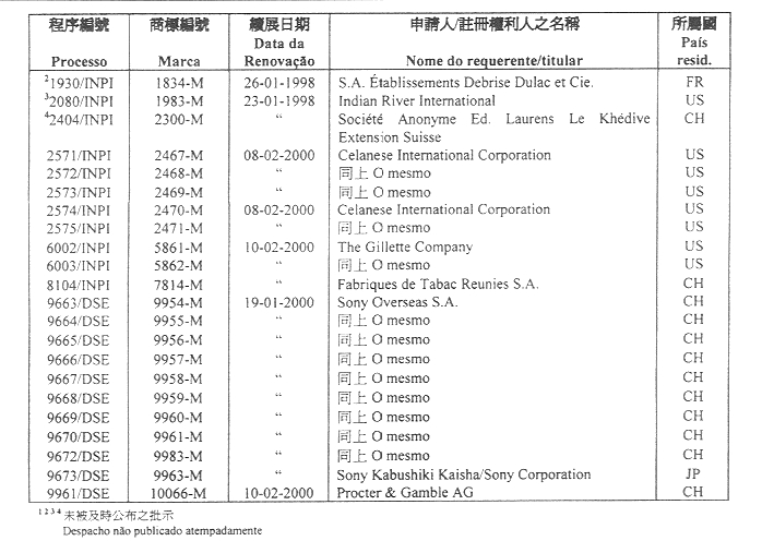 ¥Ó½Ð¤H¡GThe Gillette Company, corporação organizada segundo as leis do Estado do Delaware, Prudential Tower Buildings, Boston, Massachusetts 02199, Estados Unidos da América.
