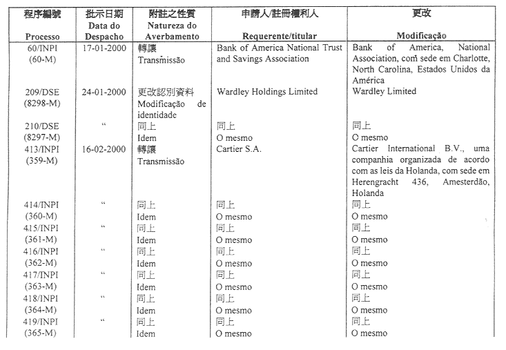 ¥Ó½Ð¤H¡GBritish American Tobacco (Brands) Inc., 401 South Fourth Avenue, Suite 1800, Louisville, Kentucky 40 202, Estados Unidos da América.