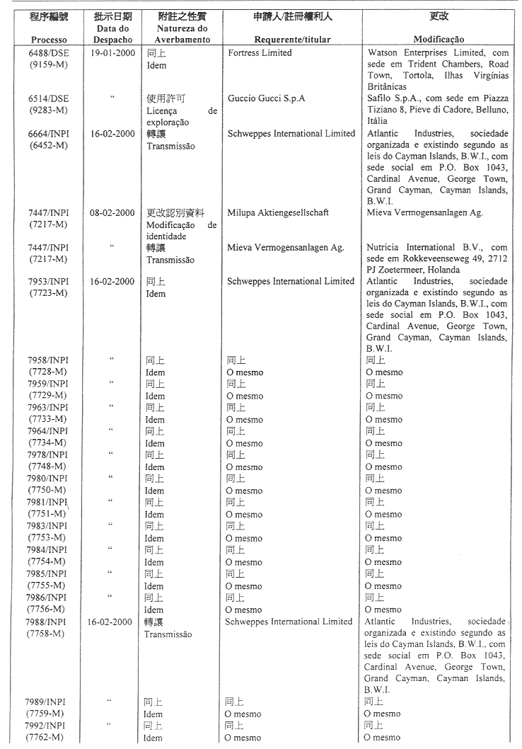 ¥Ó½Ð¤H¡GCerebos Pacific Limited, sociedade organizada e existindo de acordo com as leis de Singapura, 1 Kim Seng Promenade #11-01/06, Great World City, East Office Tower, Singapore 237 994, Singapura.