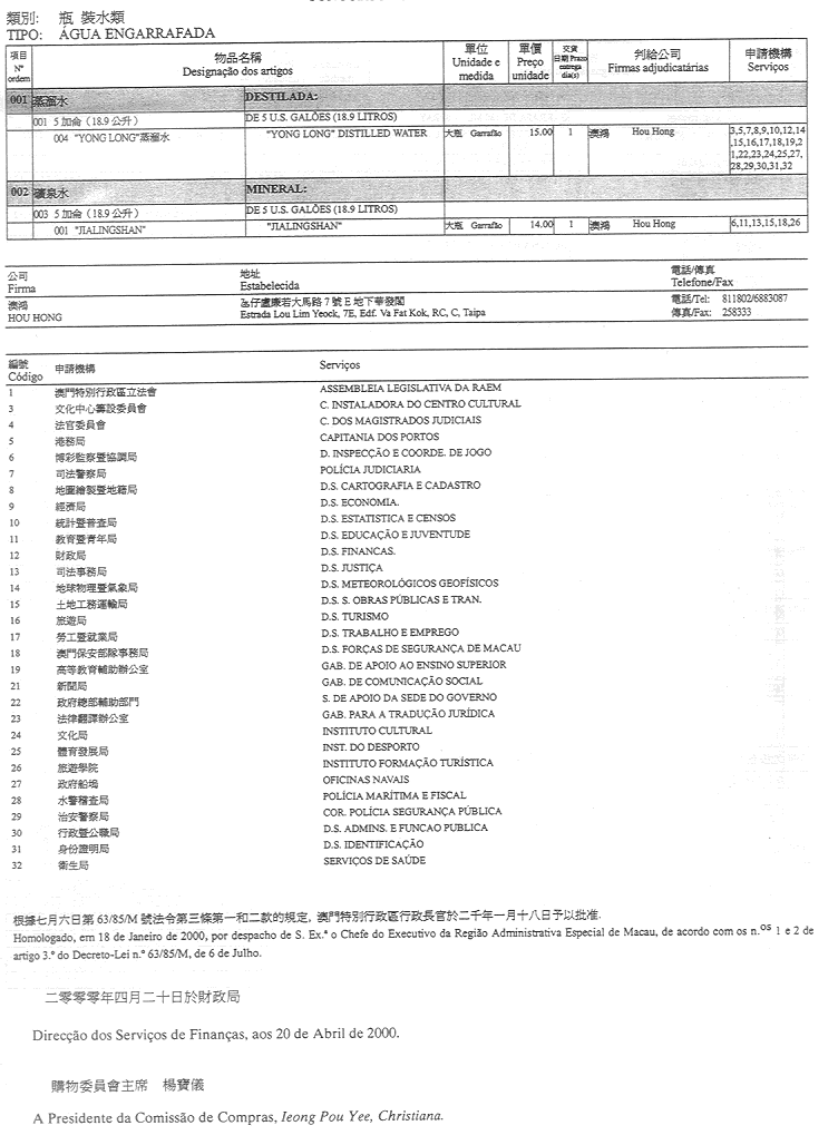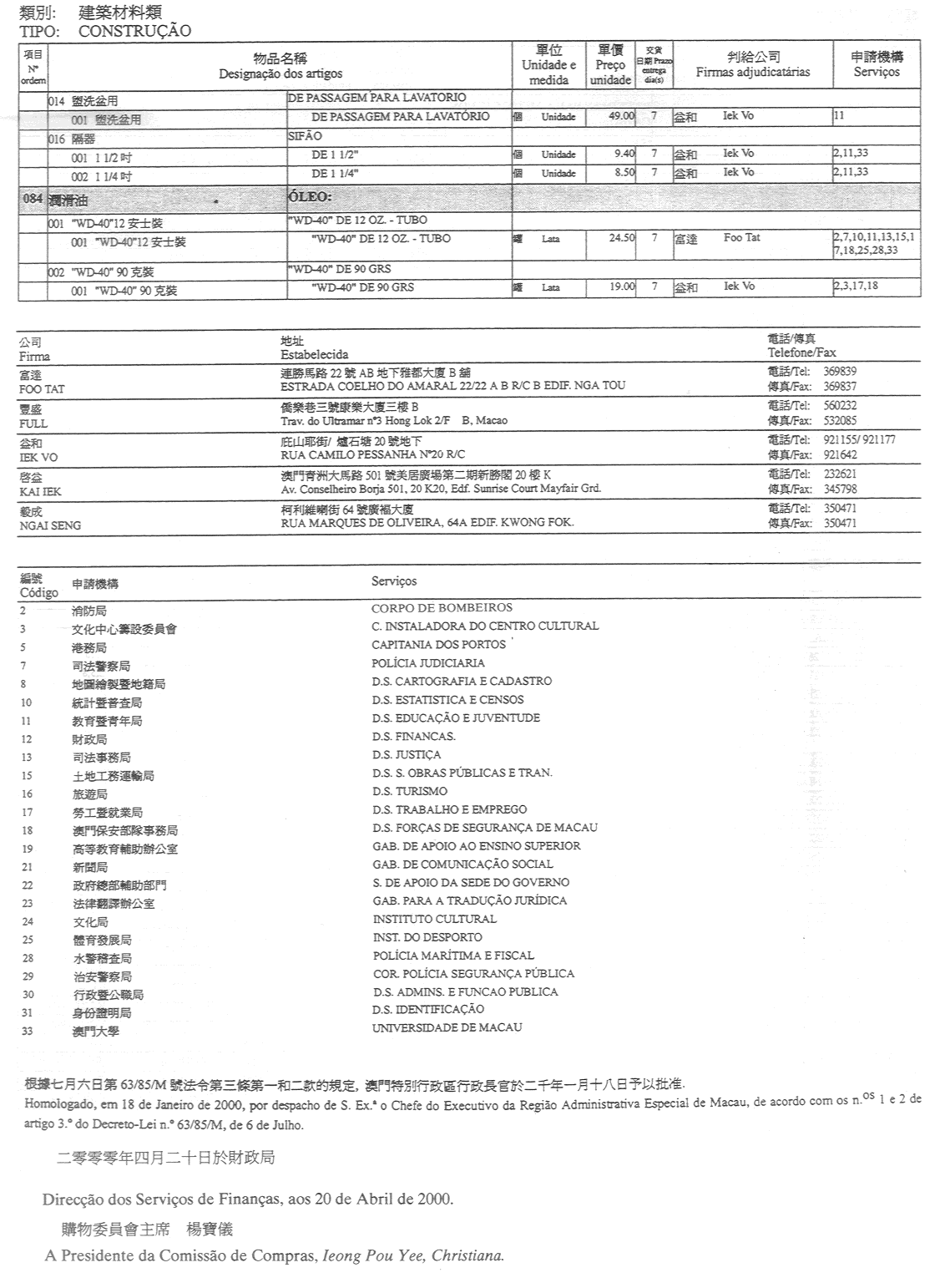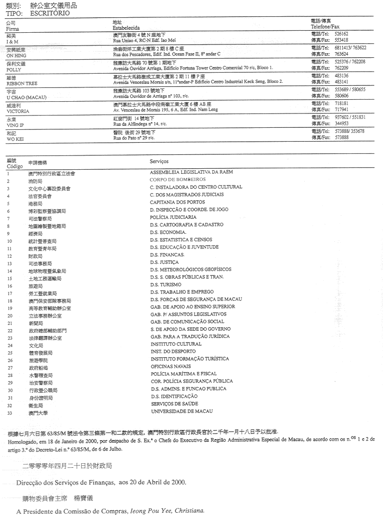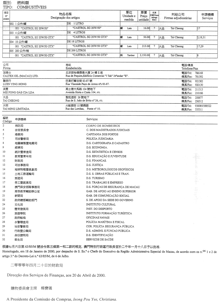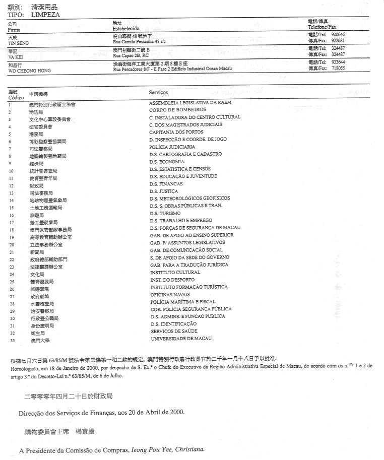 二零零零年四月十九日於商業及汽車登記局——局長 盧瑞祥