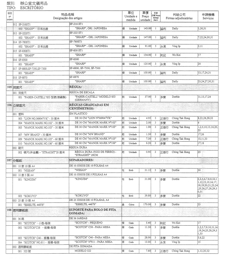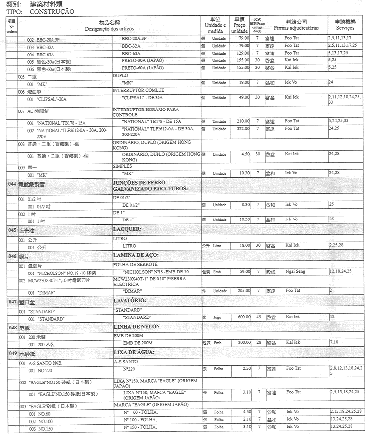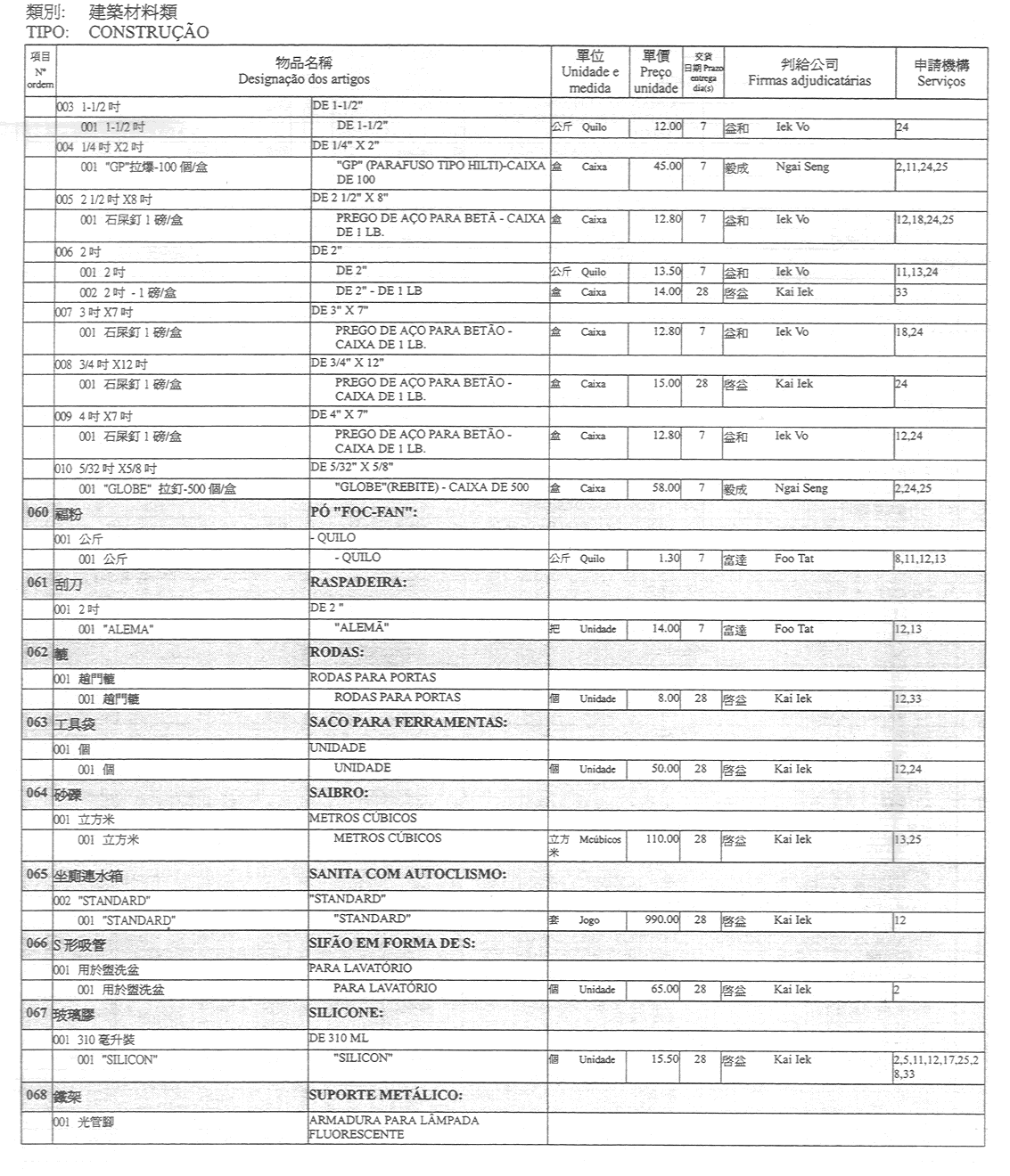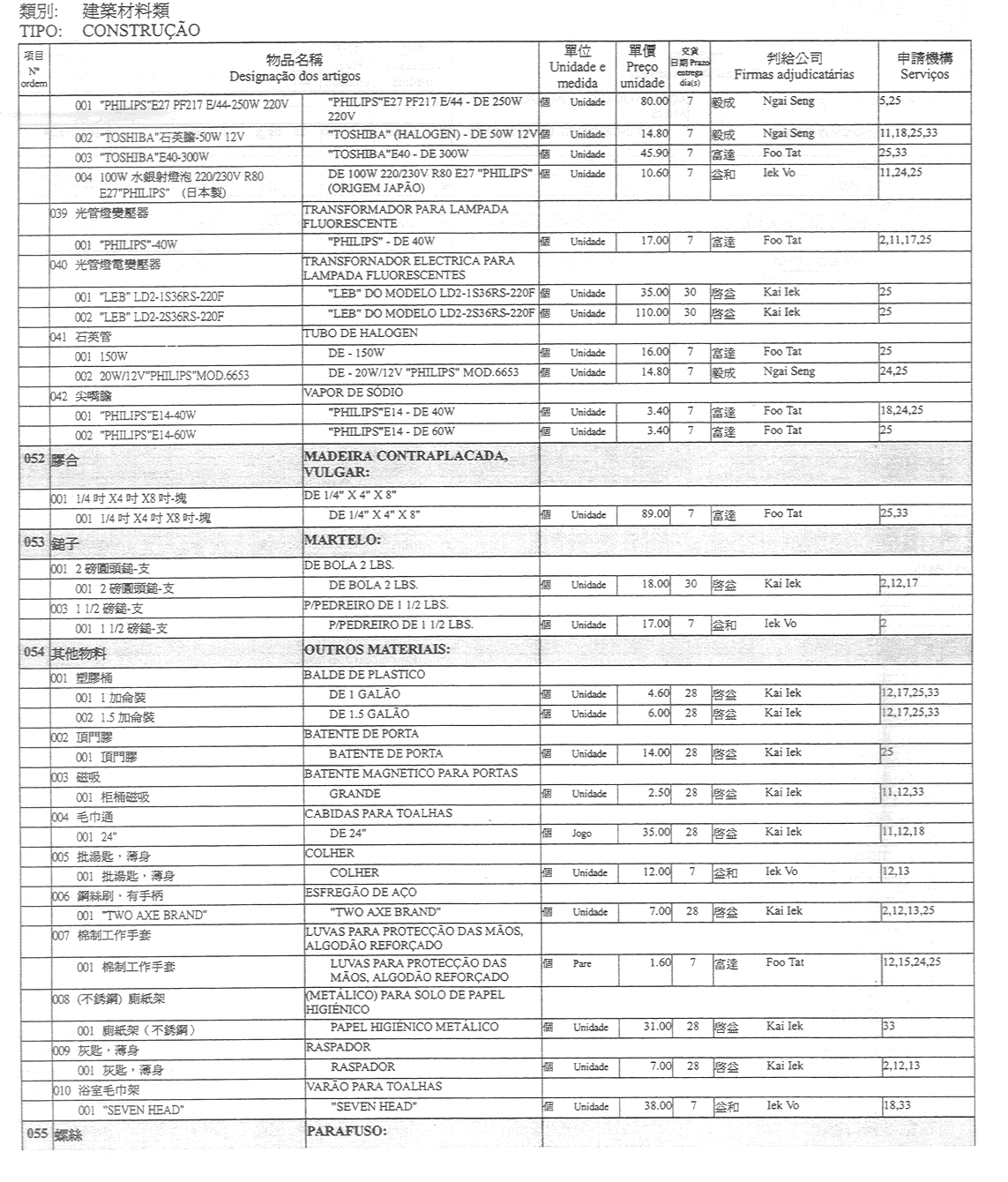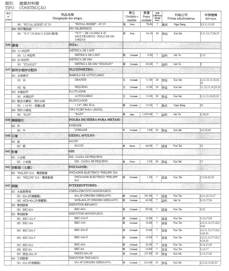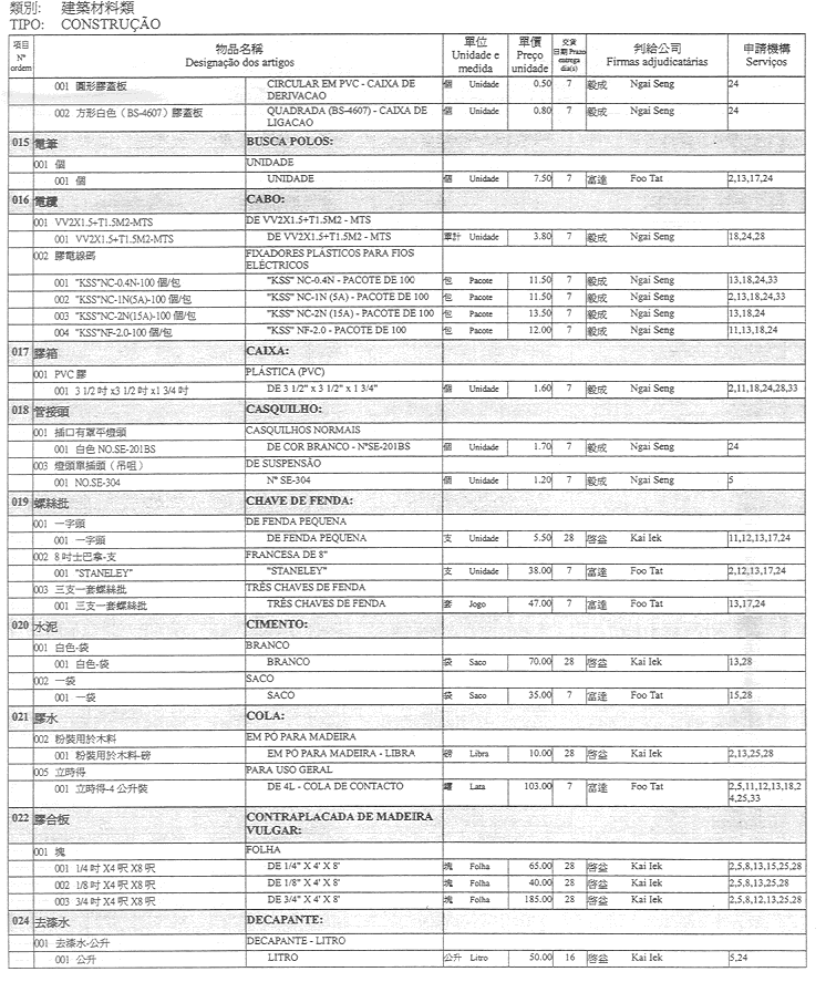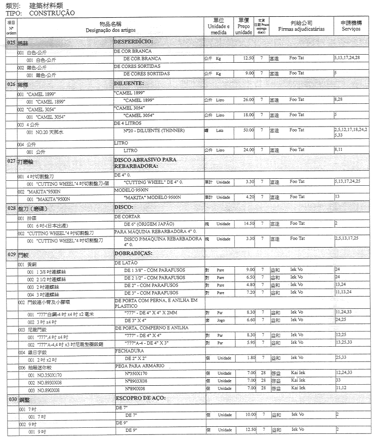 f)工程及增添財產與服務的開支制度——二月十五日第122/84/M號法令及五月十五日第30/89/M號法令;