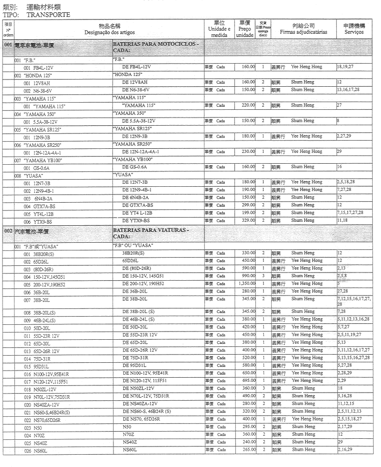 (經二零零零年四月六日運輸工務司司長的批示確認)