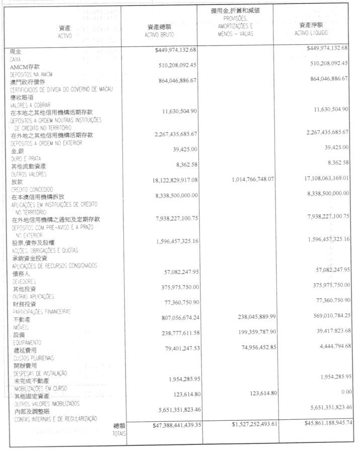 本核數師已完成審核中國銀行澳門分行截至一九九九年十二月三十一日止年度之帳項,並於二零零零年四月二十日就此帳項作出無保留意見之審核報告。