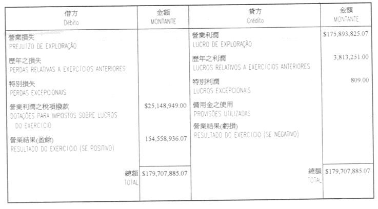 一九九九年營業結果演算