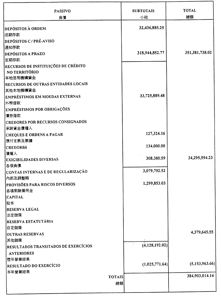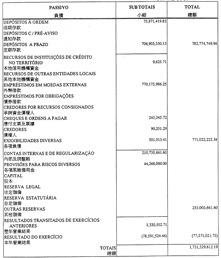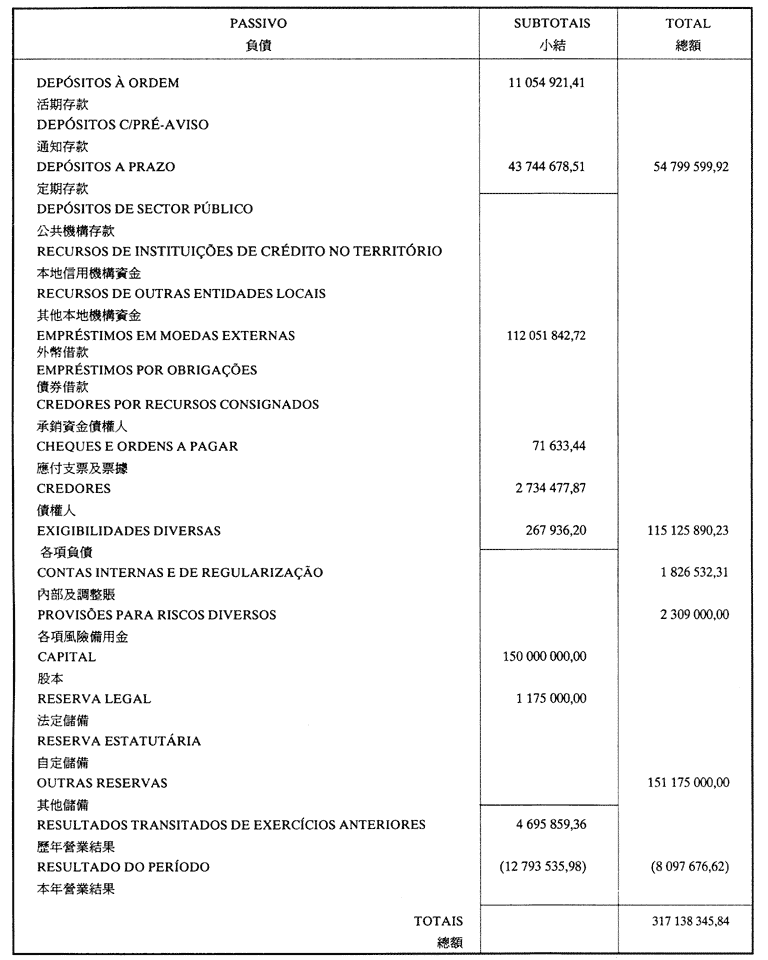 儘管如此,富利銀行(澳門)於一九九九年之流動資金達至澳門幣五百六十萬元,由於作出了撥備,因此出現了澳門幣一千二百七十萬元之虧損。本行為了履行金融管理局第18/93-AMCM號通告第八條規定,將於二零零零年第二季度作出相關之撥備。