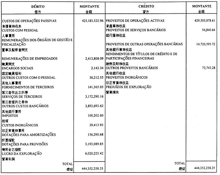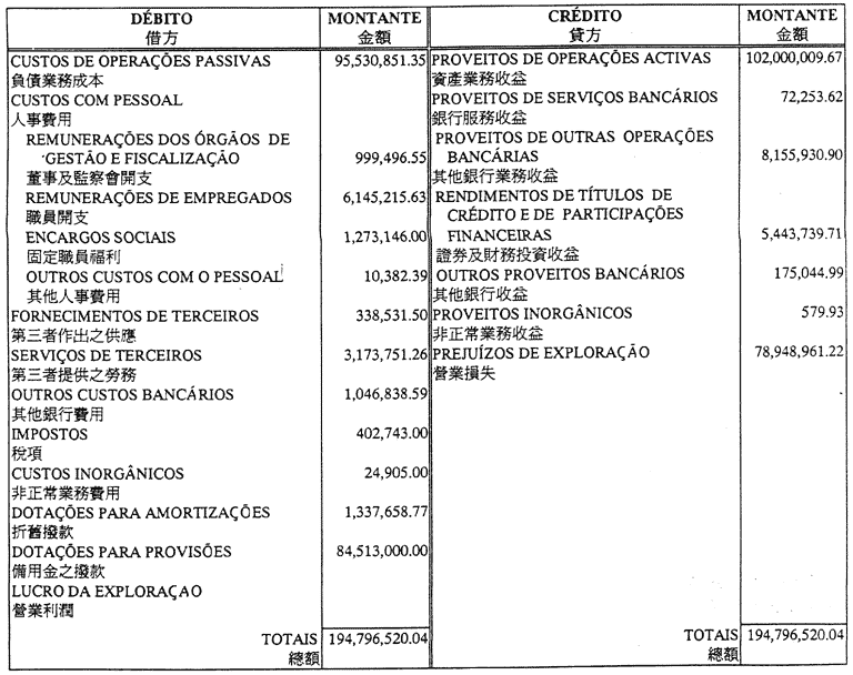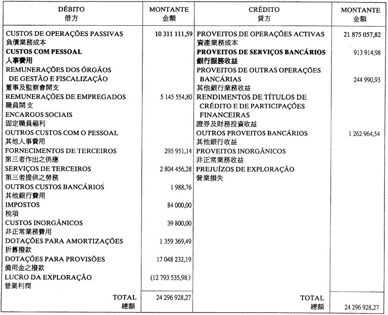 為更全面了解該分行截至一九九九年十二月三十一日止年度間的財務狀況及經營業績,帳項概要應與相關的經審計年度財務報表一併參閱。