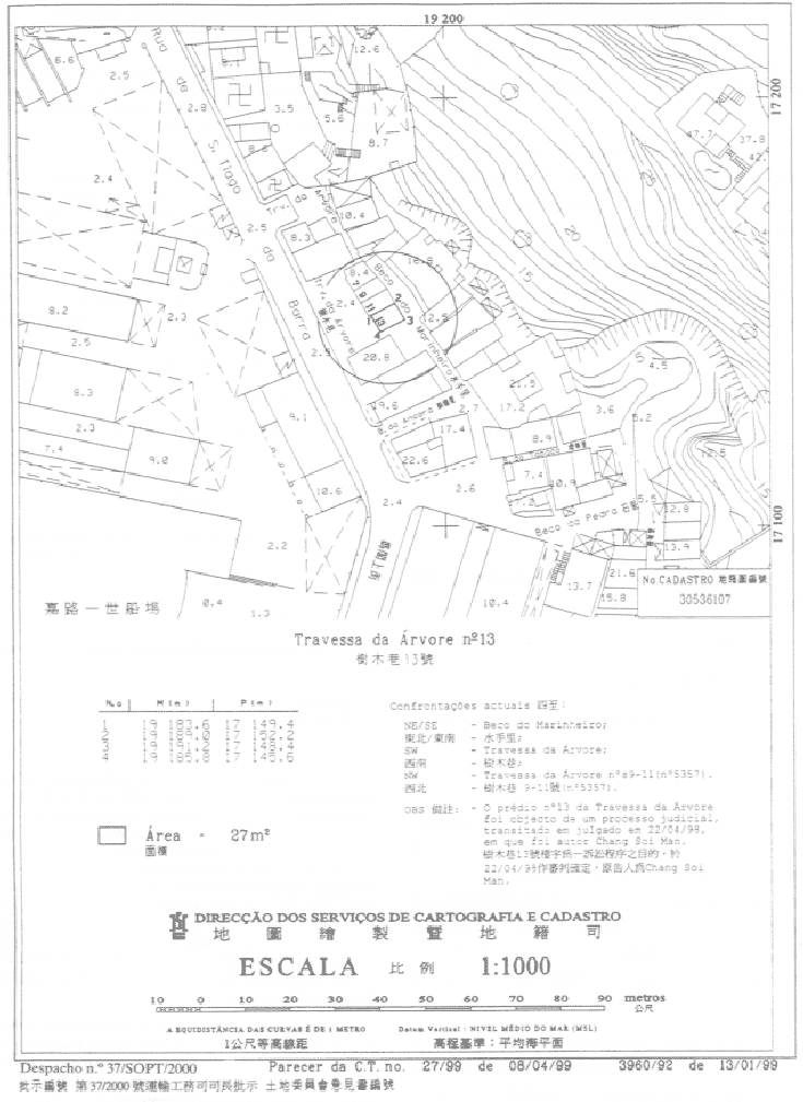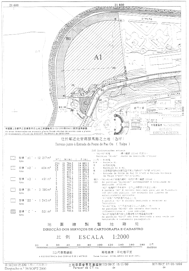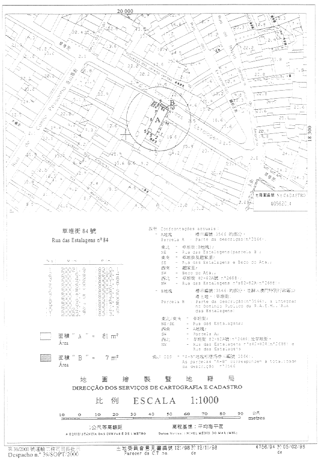 5. 在集齊所需文件後,前土地工務運輸司土地管理廳審議該申請,制訂經修改的合同擬本,將現由申請者持有利用權的有關土地以長期租借方式無償批出,並以相同的法律制度無償批出相鄰一幅面積712平方米,在上述地籍圖中以字母“B1”標示的土地。