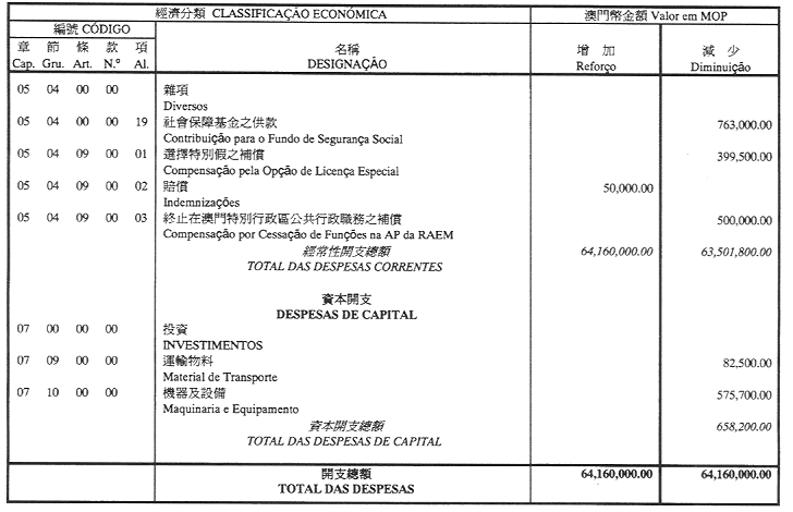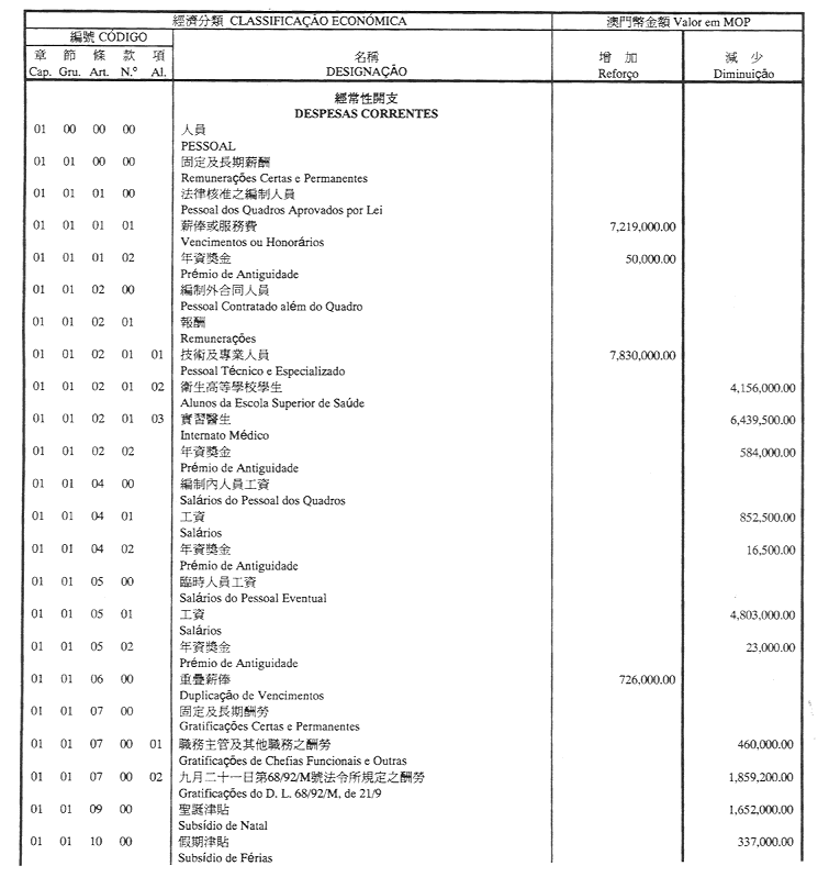 根據九月二十七日第53/93/M號法令第十九條規定,茲公布社會文化司司長於二零零零年十二月二十八日批准的衛生局二零零零年度本身預算之第一次修改: