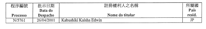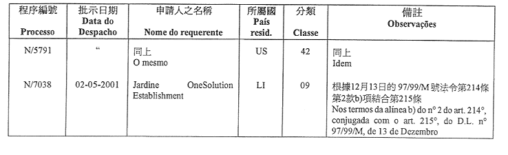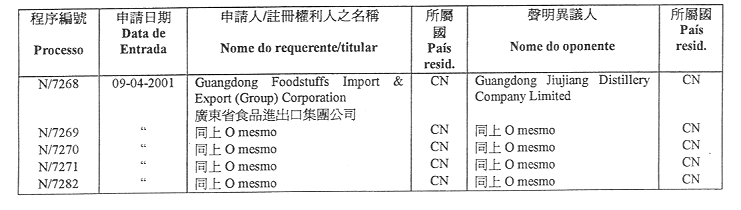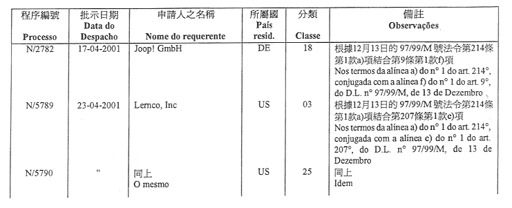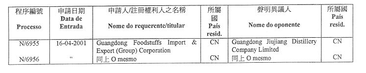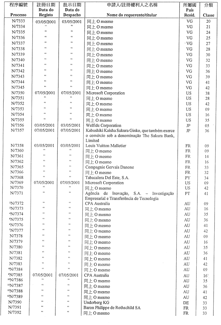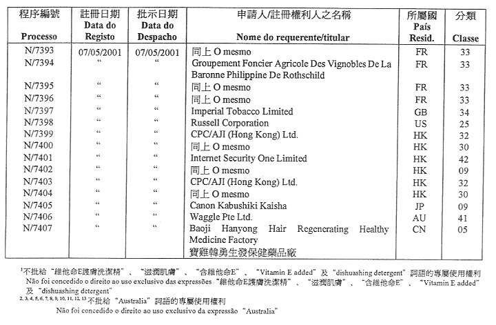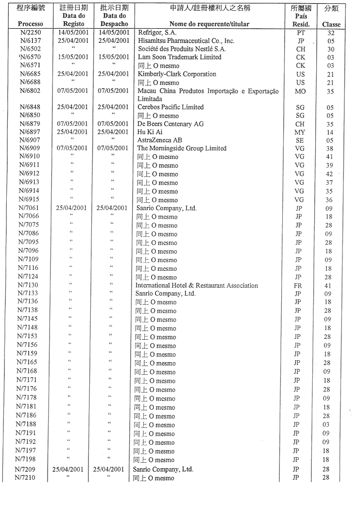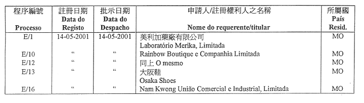 根據十二月十三日第97/99/M號法令第十條及第二百一十條,以下公布本地區商標註冊之請求書,並按照相同法規第二百一十一條第一款,由通告公布日期開始計算兩個月期限內提出聲明異議。