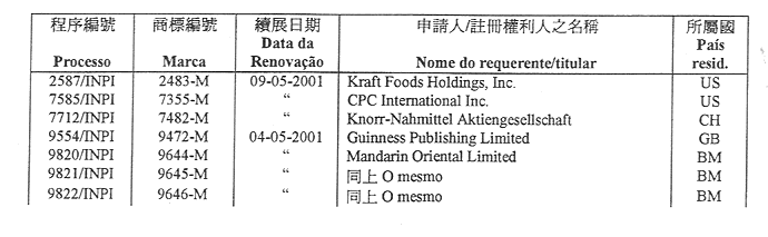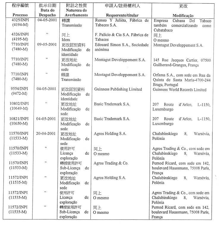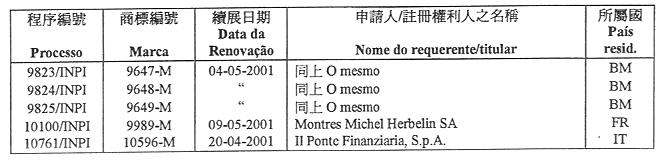 商標編號10297-M及10299-M — 在附註表欄目內,(附註的性質)原文為:“Transmissão”