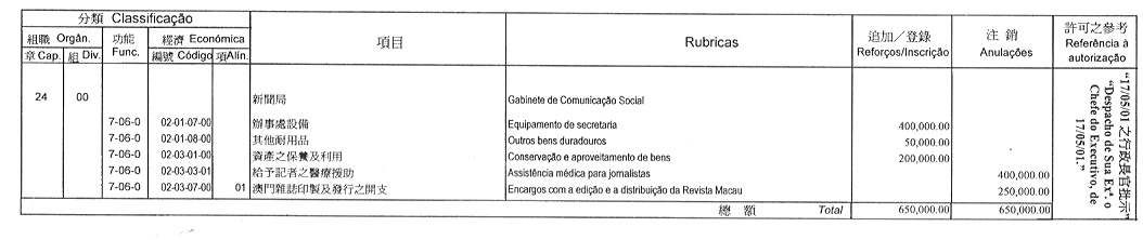 摘錄自行政法務司司長於二零零一年五月四日作出的批示:
