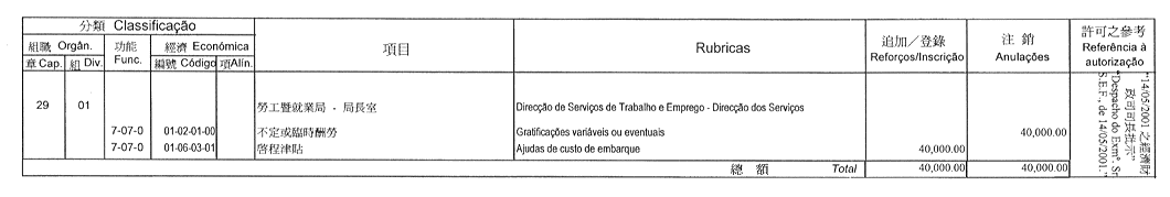 Eduardo Dillon de Jesus Freitas為第一職階三等文員,由二零零一年六月五日起生效。