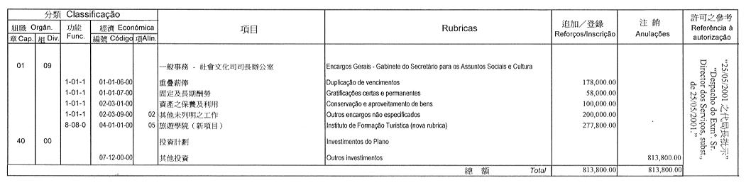 按照社會文化司司長於二零零一年五月十日批示: