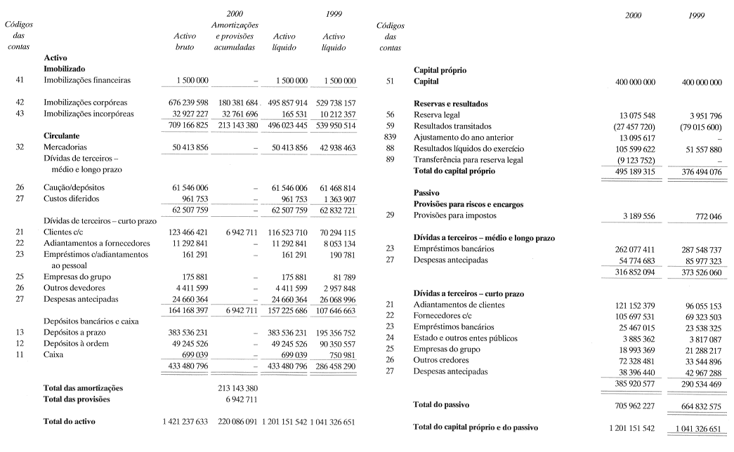Em nossa opinião, as demonstrações financeiras apresentam de forma verdadeira e apropriada a situação financeira da Sociedade em 31 de Dezembro de 2000, bem como o resultado do exercício findo.