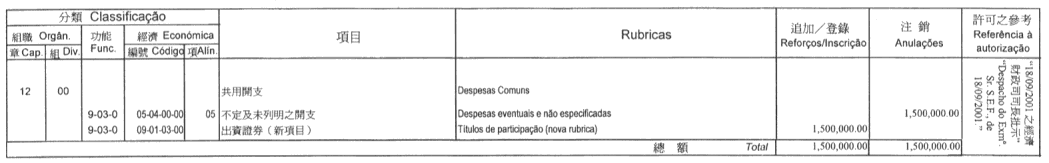 按照經濟財政司司長於二零零一年九月十日之批示: