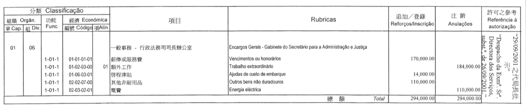 摘錄自行政法務司司長於二零零一年九月二十日作出的批示: