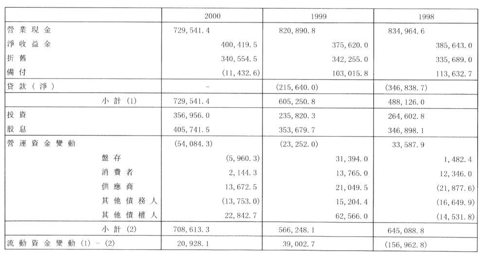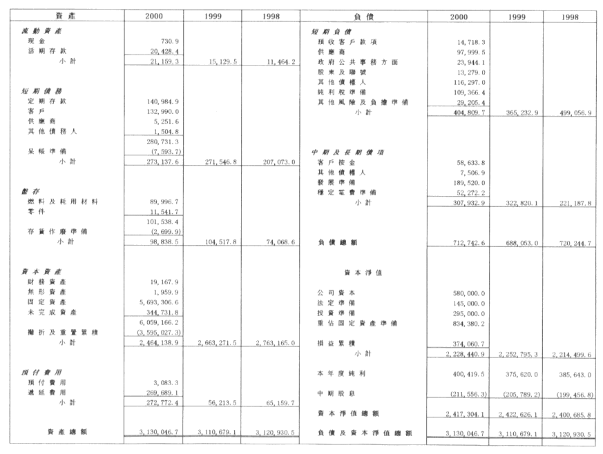 按澳電專營合約的規定,是年度稅後純利為澳門幣四億零四十萬(一九九九年為澳門幣三億七千五百六十萬)。除稅後,融資前的凈現金流量為澳門幣四億二千六百六十萬(一九九九年為澳門幣六億零八百三十萬),數字出現大幅變化之原因,是由於總現金流量之減少,以及較大的投資所致,不過已透過營運資本之減少而作出抵消。