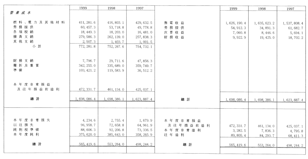 根據澳門電力有限公司章程第二十四條e項之規定,董事會將一九九九年度結算、年報及利潤分配建議書呈交本監事會發表意見。而核數師澳門德勤會計師行對有關帳目之報告書亦一併遞交。