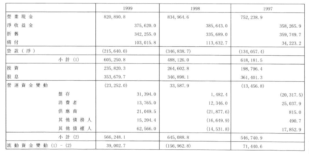 是年度之稅後純利達澳門幣三億七千五百六十萬,稍遜於一九九八年(澳門幣三億八千五百六十萬)。除稅後,融資前的淨現金流量為澳門幣六億零八百三十萬(一九九八年為澳門幣五億三千六百八十萬)。上升原因是由於流動資產淨值下降及投資金額減低。融資後之數字為澳門幣三億九千二百七十萬(一九九八年為澳門幣一億八千九百九十萬)。
