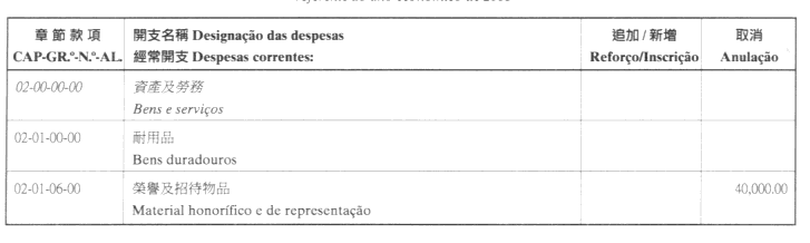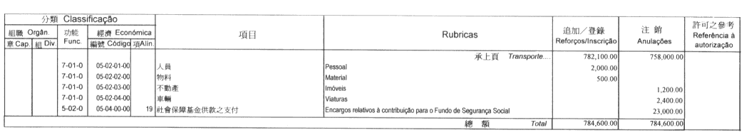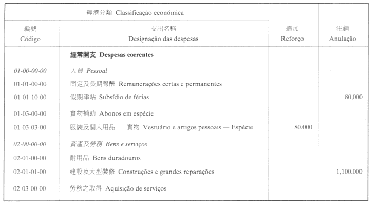 按照九月二十七日第53/93/M號法令第十九條的規定,茲公佈檢察長於二零零一年十月十二日批准之檢察長辦公室二零零一年經濟年度本身預算第二次修改: