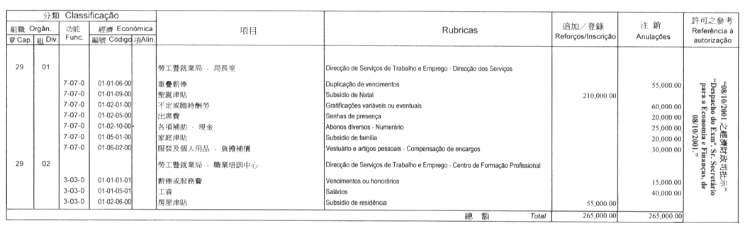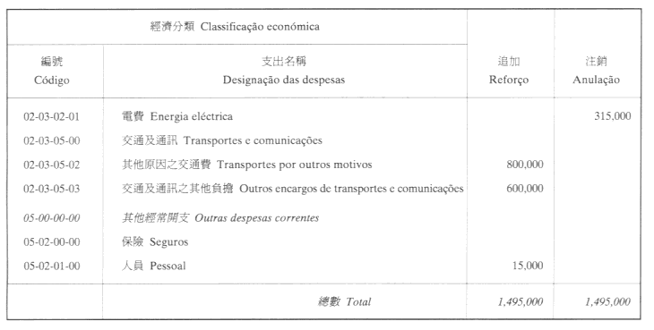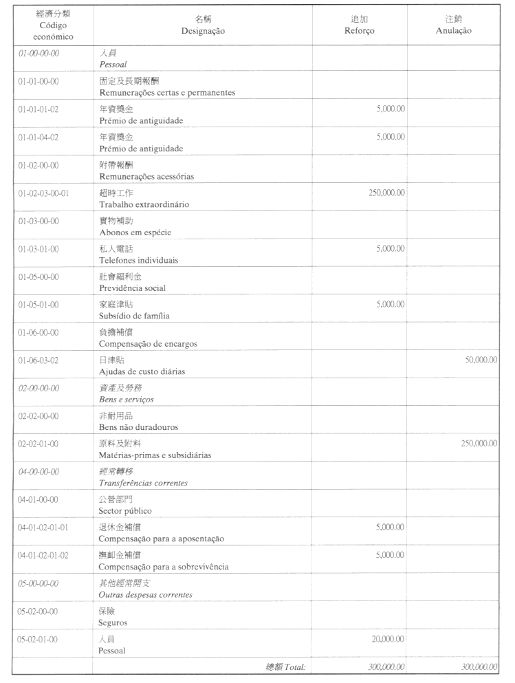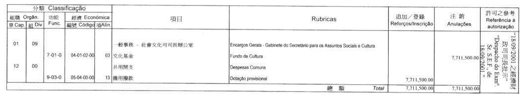 根據九月二十七日第53/93/M號法令第十九條之規定,茲公佈由經濟財政司司長於二零零一年十月十二日批示所核准之工商業發展基金第三修改預算: