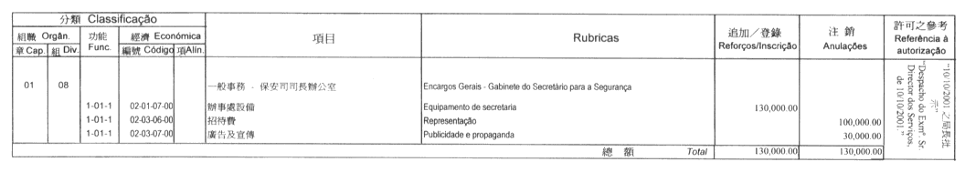 摘錄自保安司司長於二零零一年十月十日第48/SS/2001號之批示: