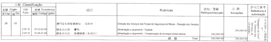 二零零一年十月十八日於澳門保安部隊事務局