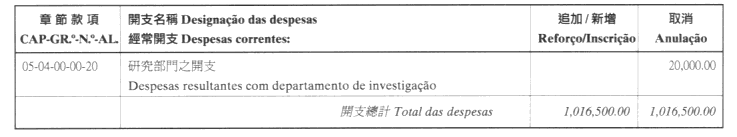 | 名稱 | 金額 | 資助項目 |
