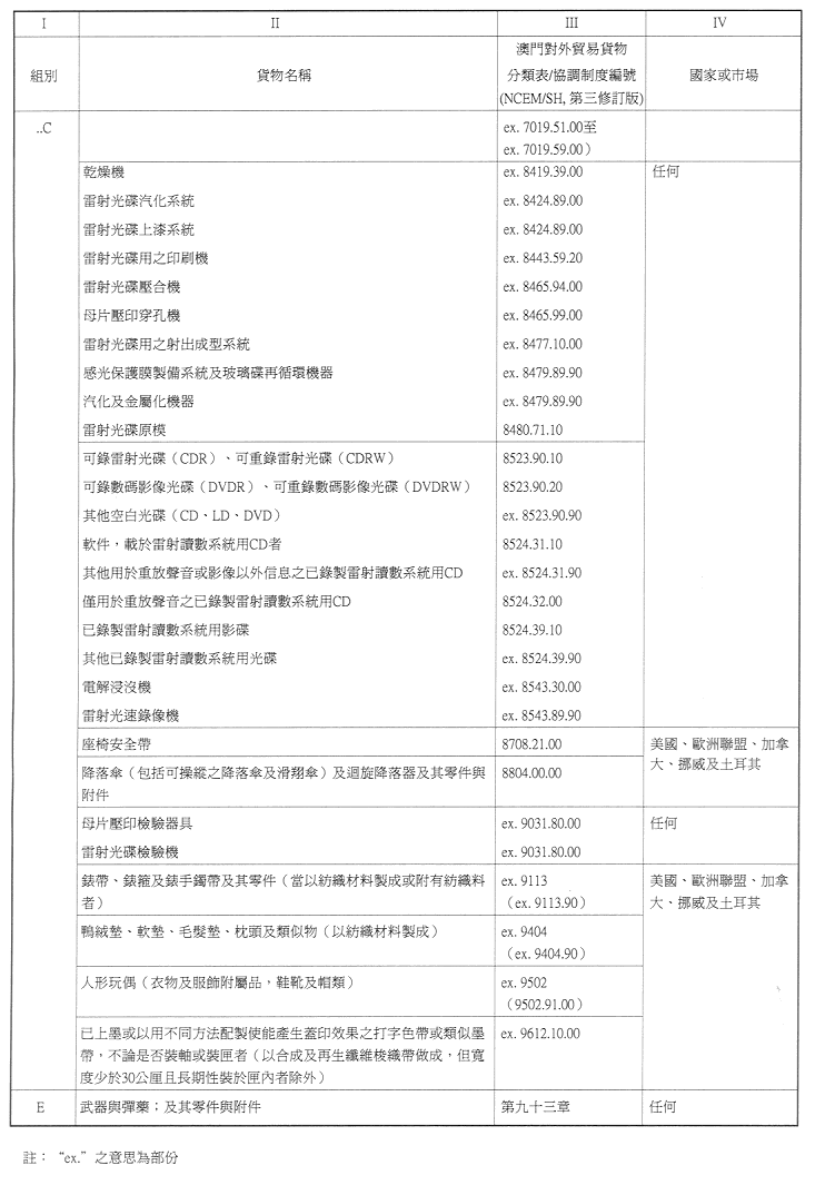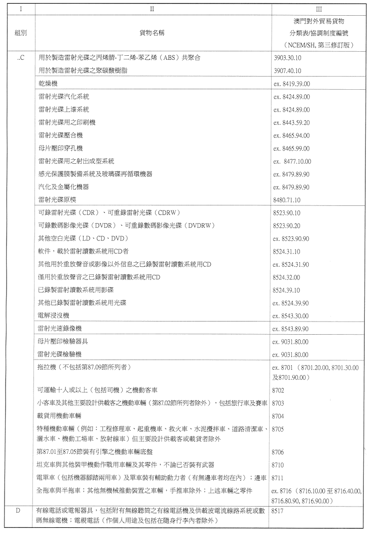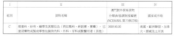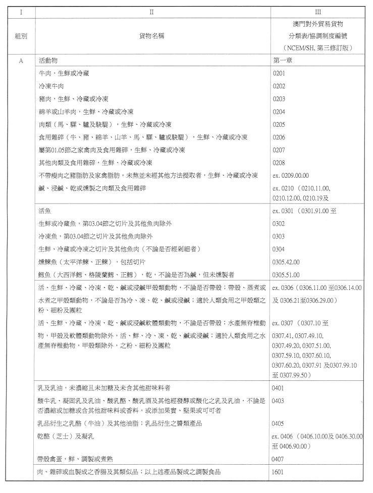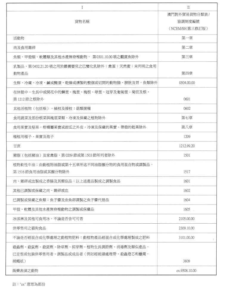 附件三 —— 須接受衛生檢疫 / 植物檢疫之貨物表