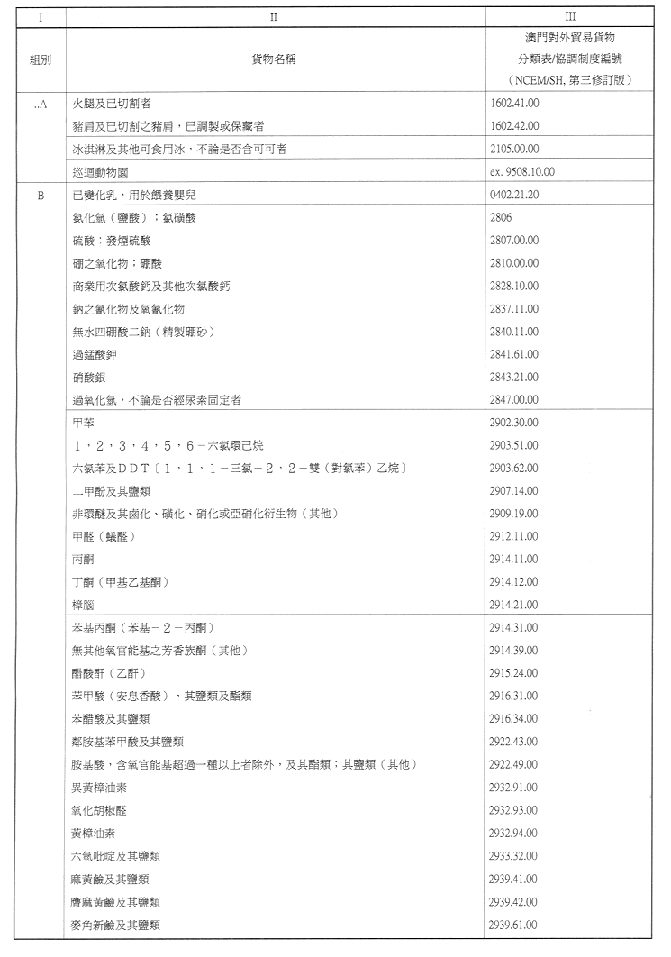 二、核准經十二月二十一日第59/98/M號法令修改之十二月十八日第66/95/M號法令第九條第一款a項及b項所指之出口表及進口表,該出口表及進口表載於本批示附件二內,分別簡稱為表A及表B。