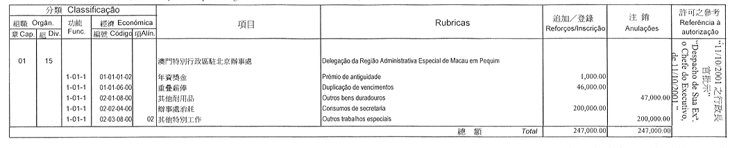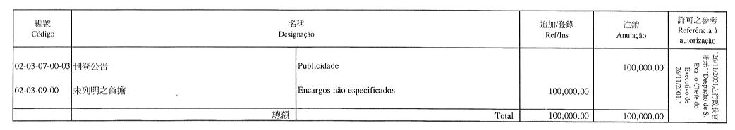 摘錄自行政法務司司長於二零零一年十一月二十一日的批示及行政長官於二零零一年十一月二十二日作出的批示: