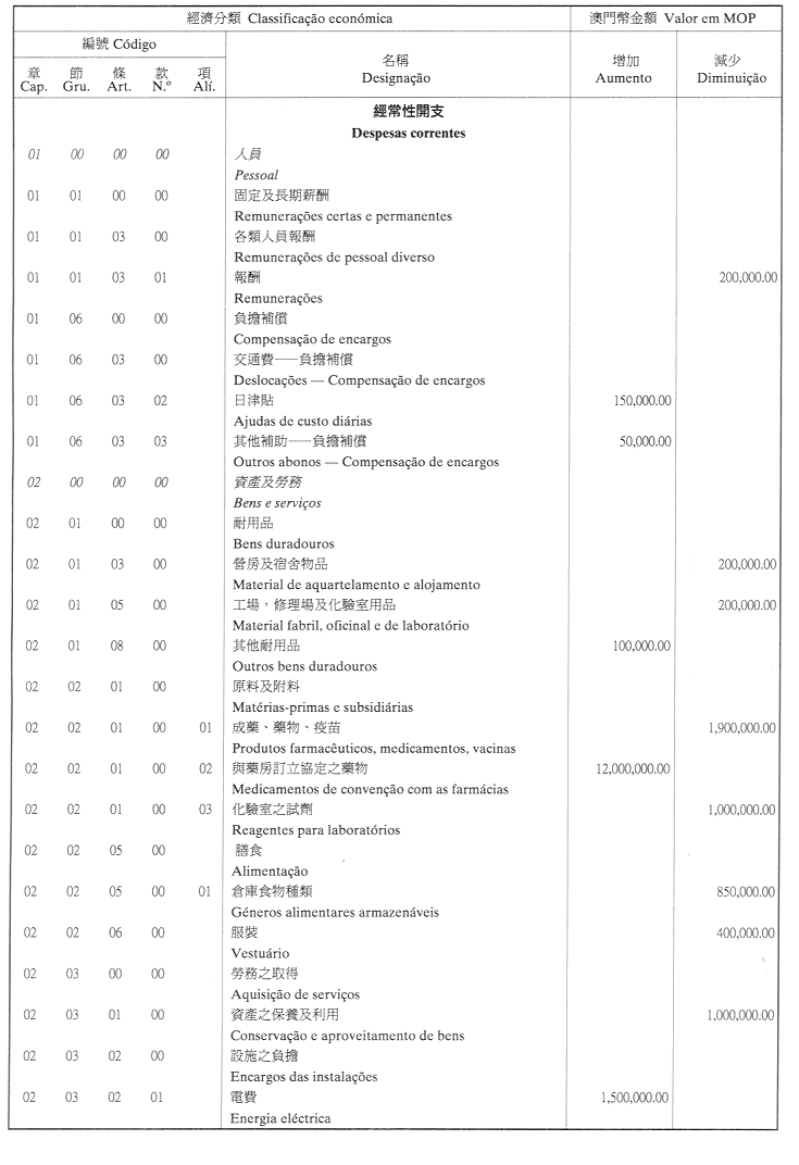 根據九月二十七日第53/93/M號法令第十九條的規定,核准有關二零零一財政年度之司法、登記暨公證公庫本身預算的修改: