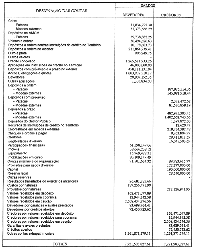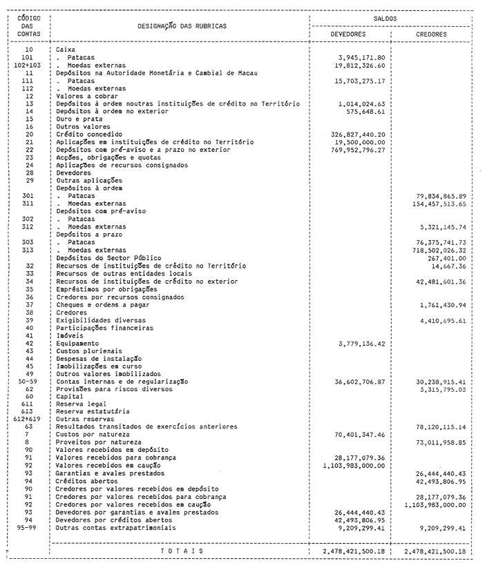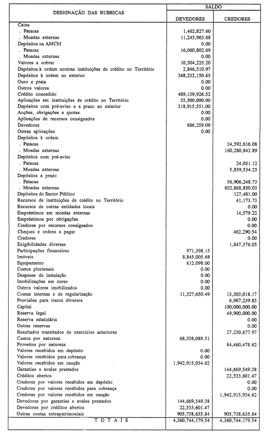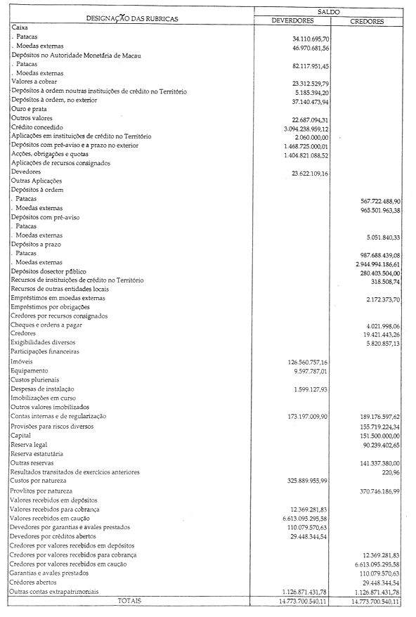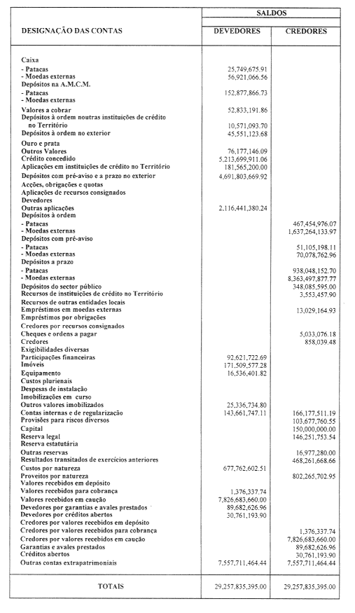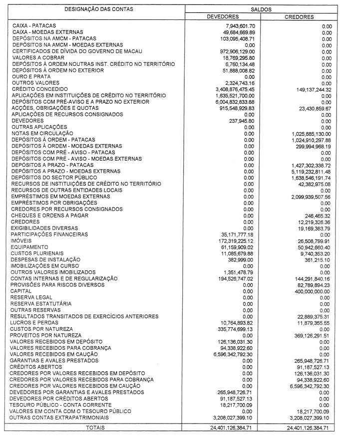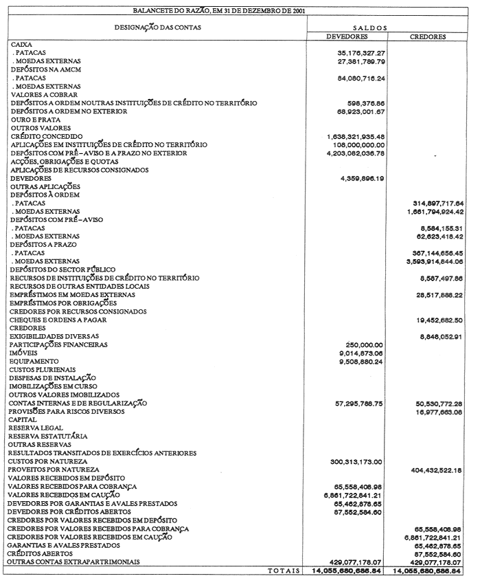 Balancete do razão em 31 de Dezembro de 2001 (Consolidado)