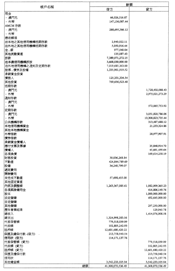 試算表於二零零一年十二月三十一日