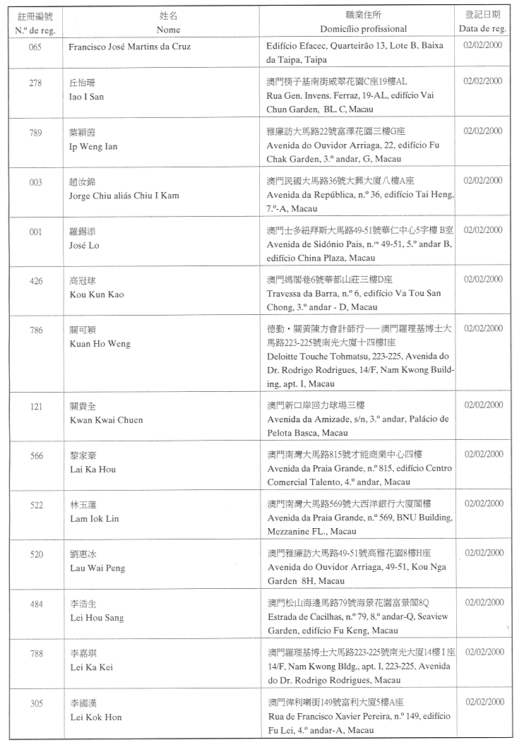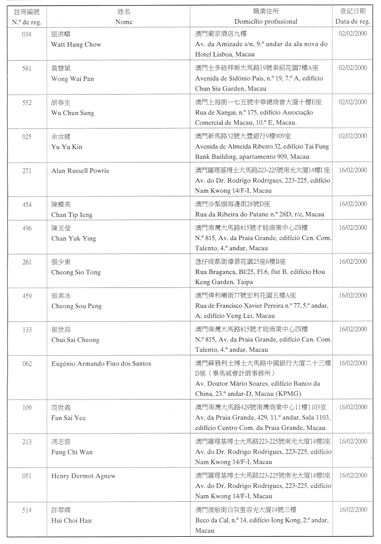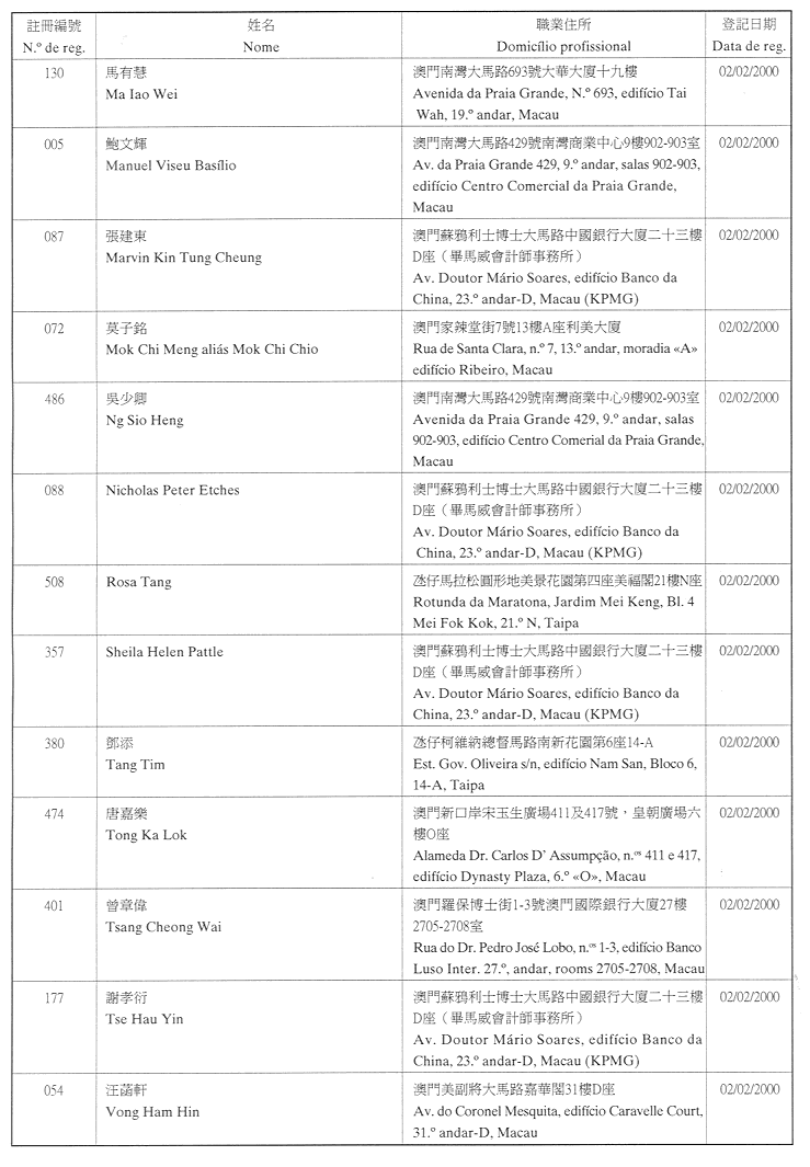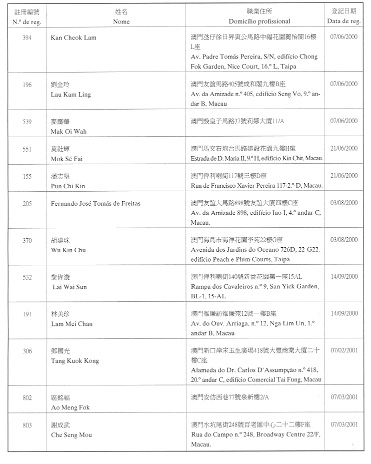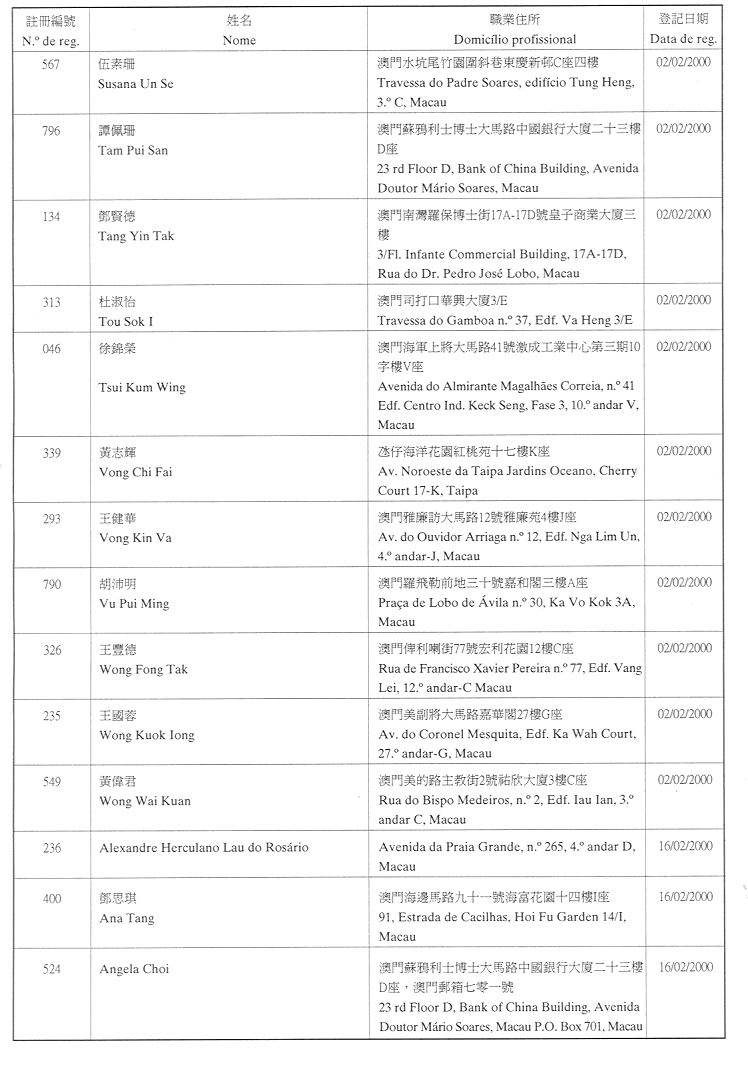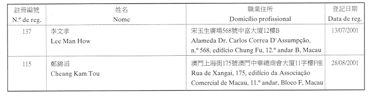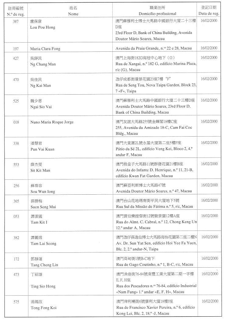 (經行政法務司司長於二零零二年二月十五日的批示確認)