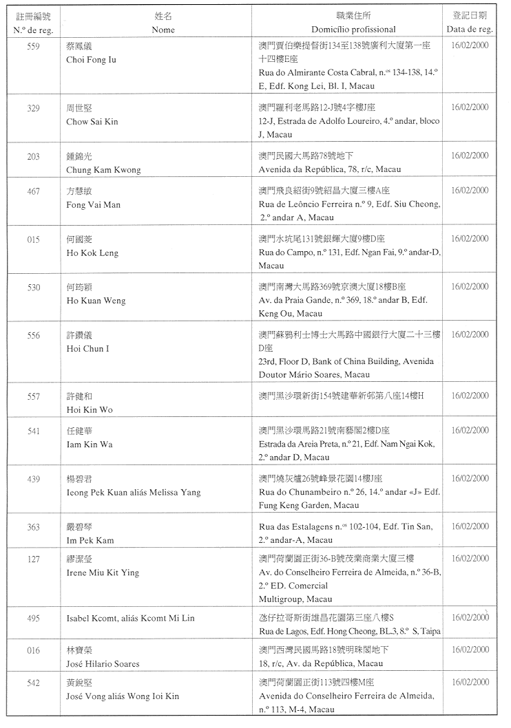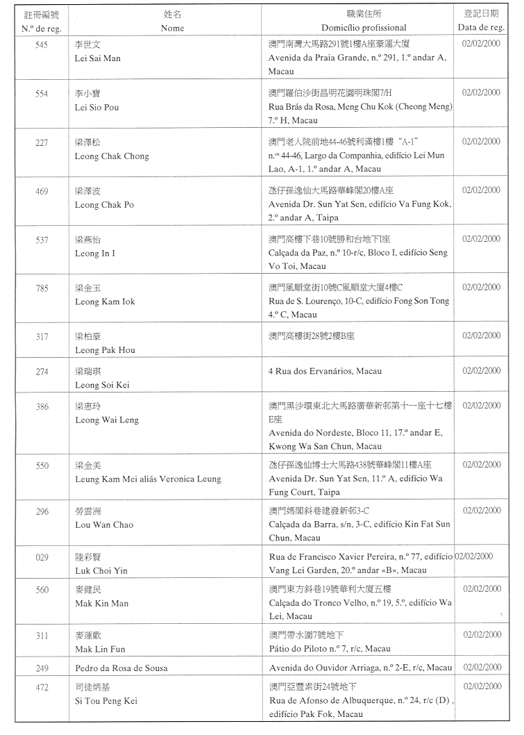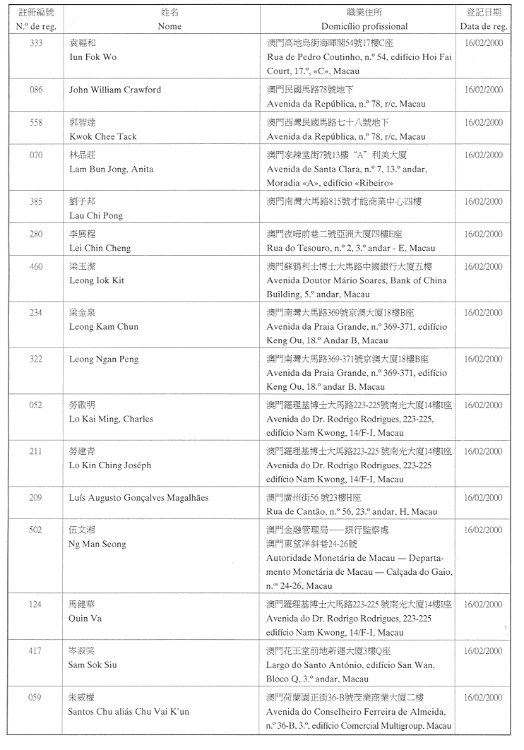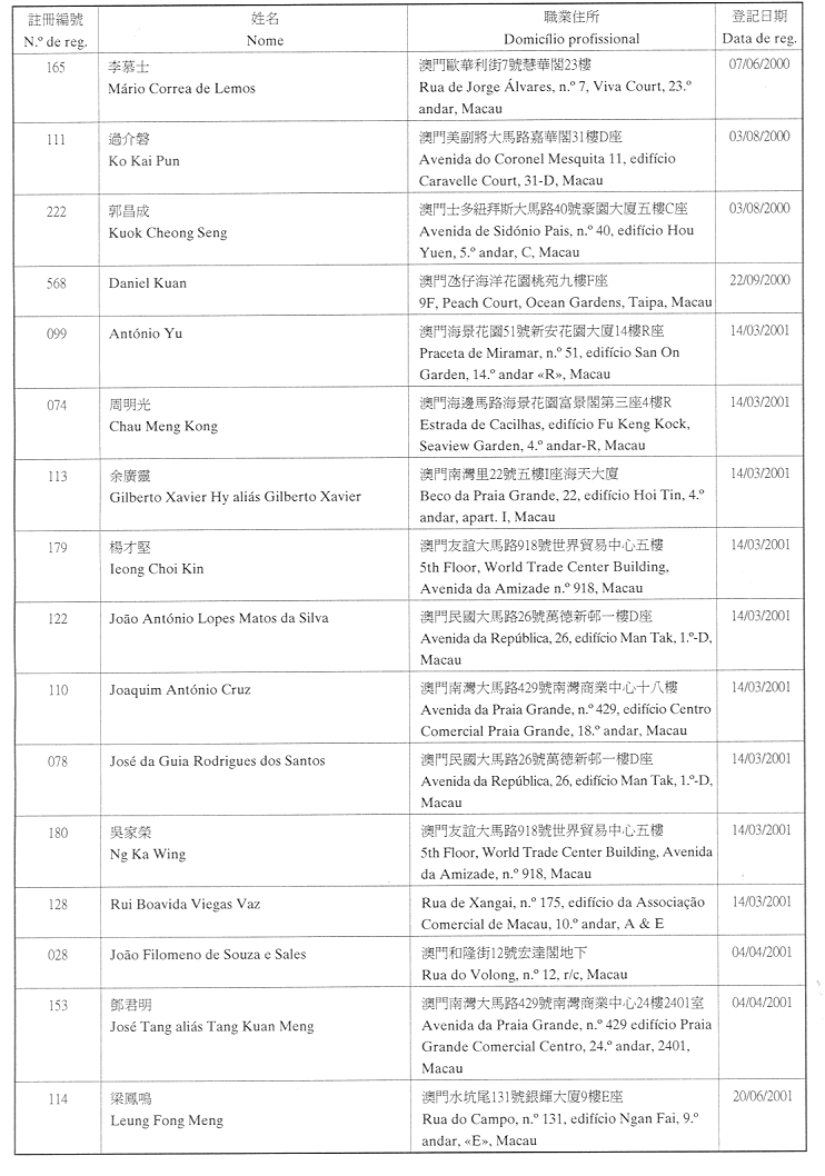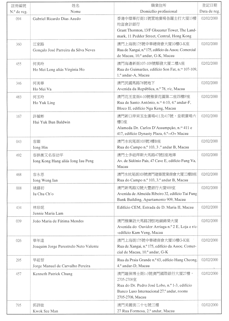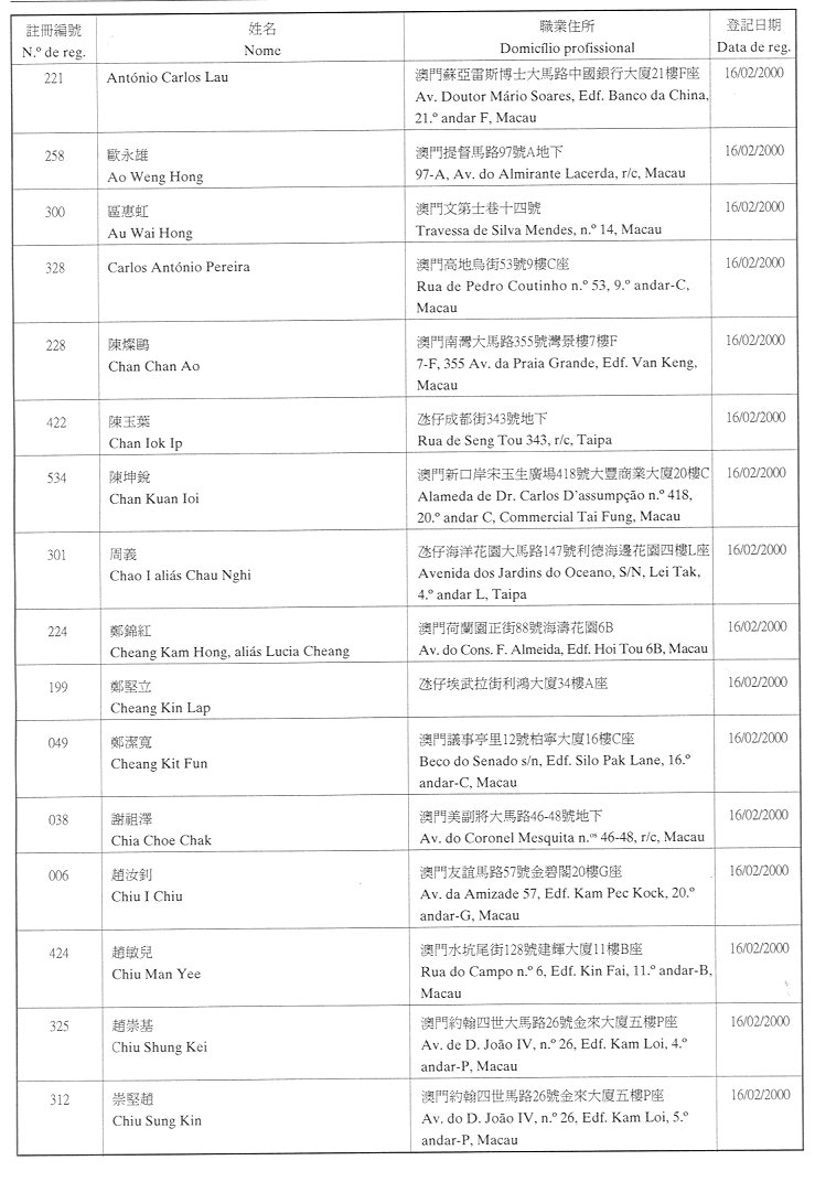 (經行政法務司司長於二零零二年二月十五日的批示確認)