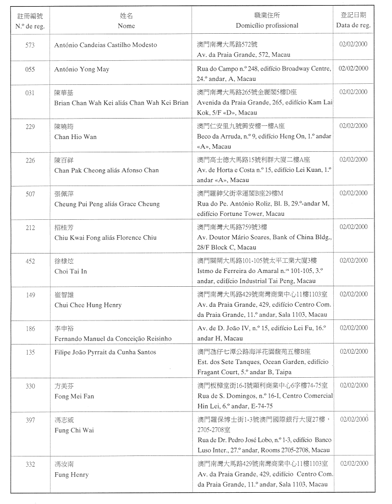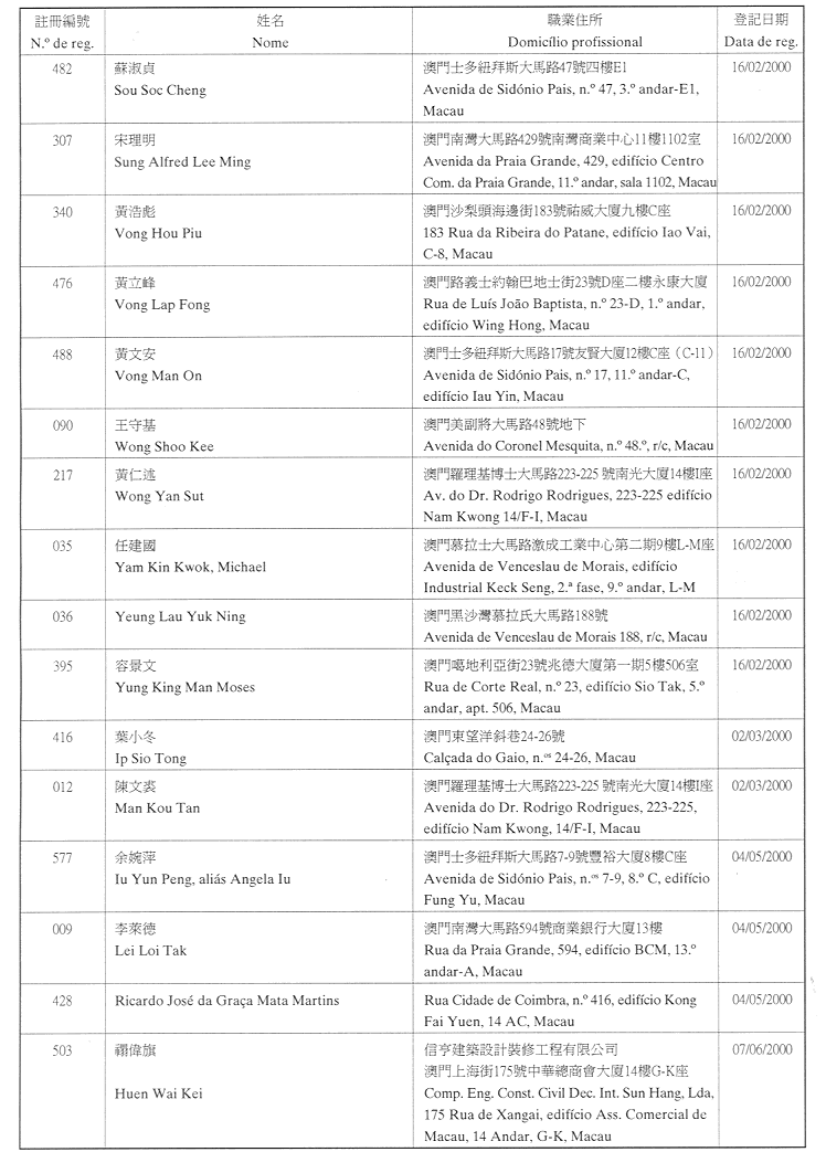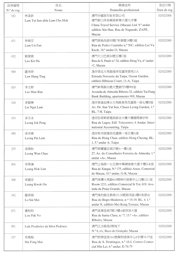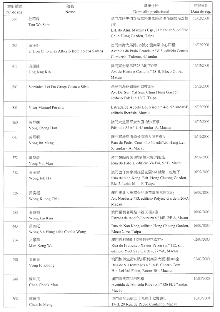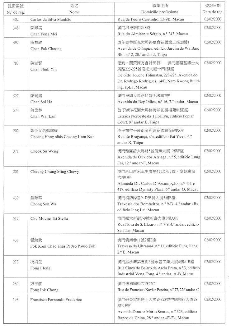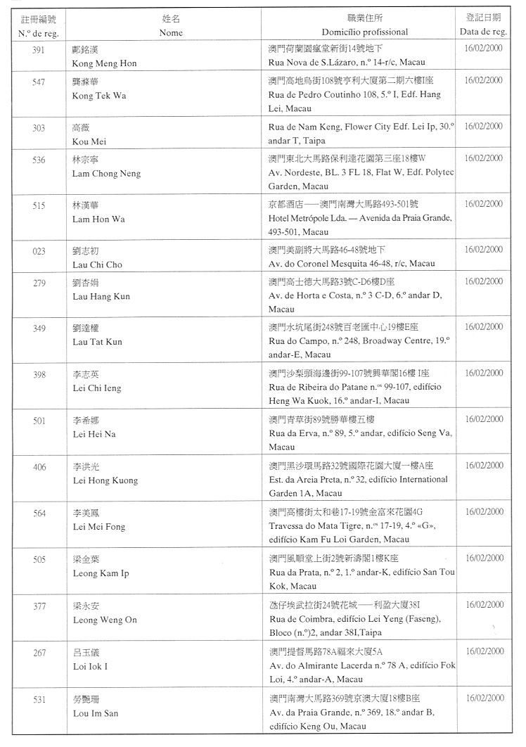 (經行政法務司司長於二零零二年二月十五日的批示確認)