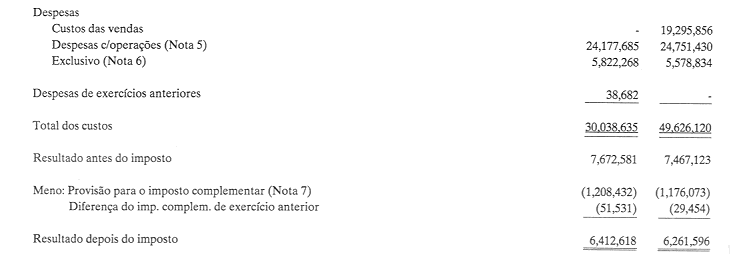 Provisão para o Imposto Complementar dos Rendimentos: |