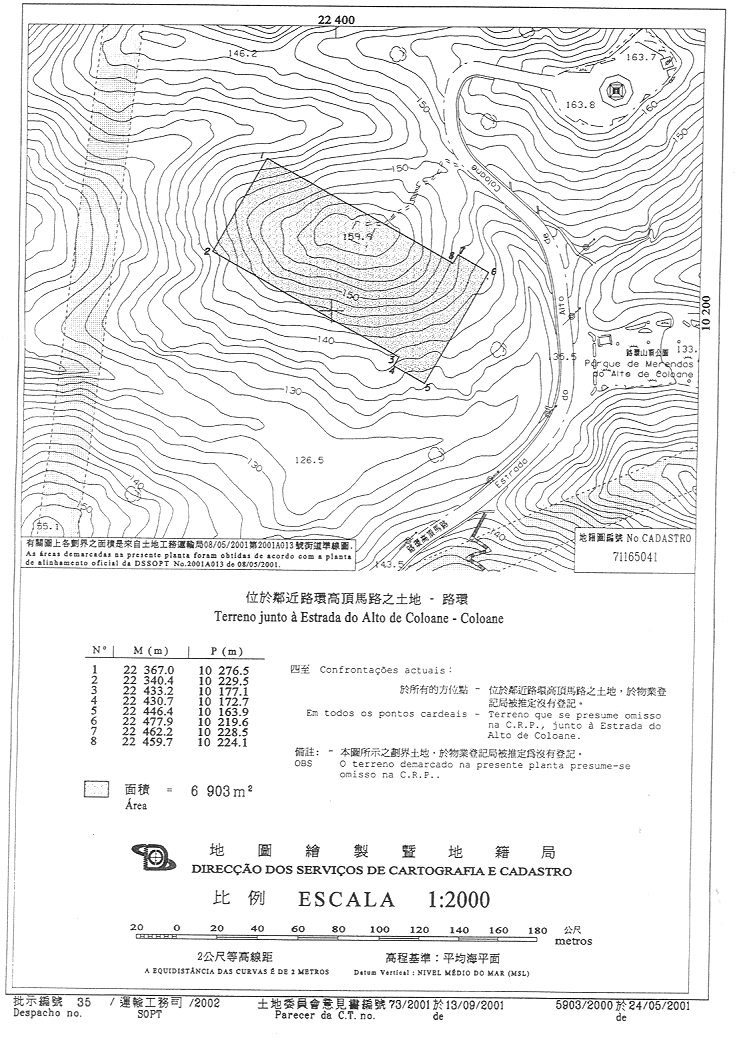 八、上指土地並無標示於物業登記,其在地圖繪製暨地籍局於二零零一年五月二十四日發出的第5903/2000號地籍圖中定界。
