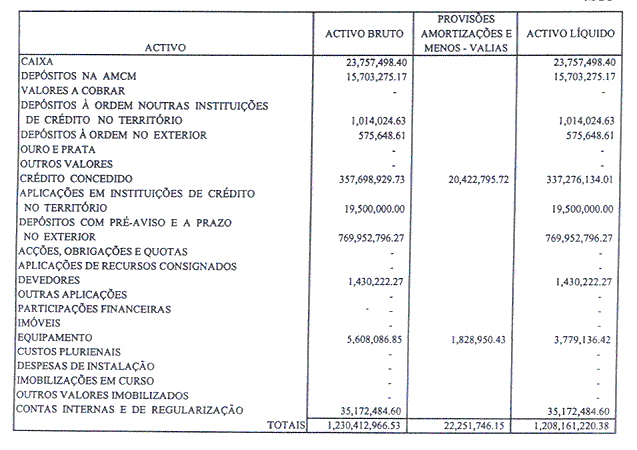 Em nossa opinião, as demonstrações financeiras, preparadas em conformidade com as bases de apresentação descritas nas notas às demonstrações financeiras, apresentam de forma verdadeira e apropriada a posição financeira do Banco em 31 de Dezembro de 2001, bem como os resultados das suas operações no período compreendido entre 1 de Janeiro de 2001 e 31 de Dezembro de 2001.