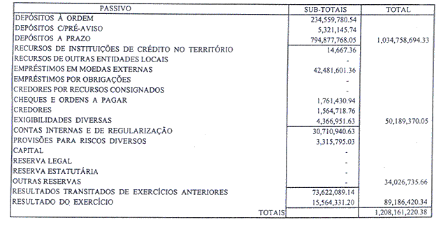 Na nossa opinião, as demonstrações financeiras dão uma imagem verdadeira e apropriada da posição financeira do Banco em 31 de Dezembro de 2001, e o seu resultado do ano findo naquela data.