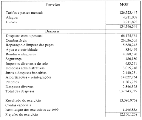 O encerramento financeiro do ano de 2001 releva um lucro de MOP 1 005 088.
