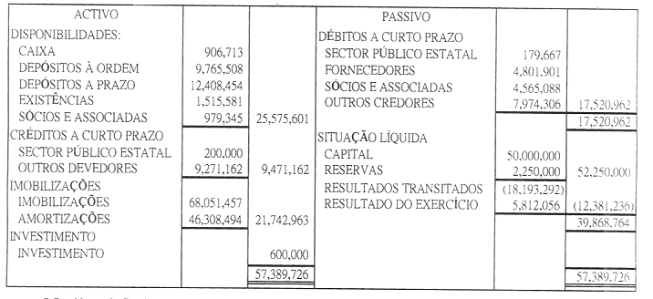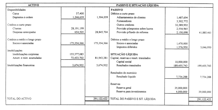 Balanço do exercício findo em 31 de Dezembro de 2001